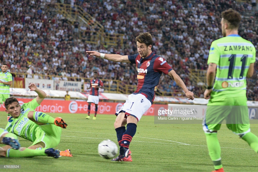 BOLOGNA, ITALY - JUNE 09: Gianluca Sansone # 11 of Bologna FC scores a goal during the Serie B play-off final match between Bologna FC and Pescara Calcio at Stadio Renato Dall'Ara on June 9, 2015 in Bologna, Italy. (Photo by Mario Carlini / Iguana Press/Getty Images)
