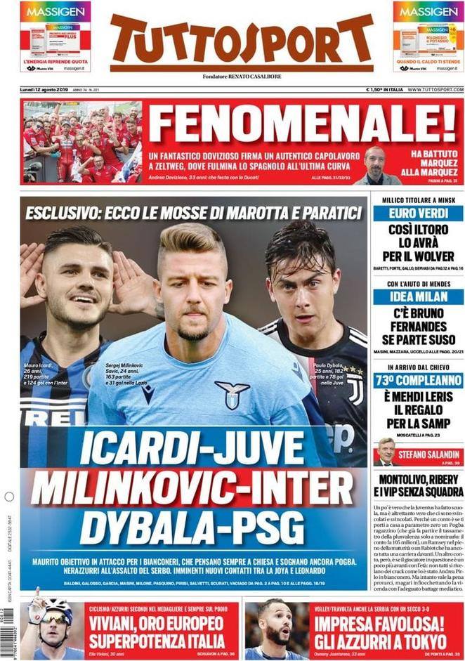 TORINO – Di seguito vi proponiamo l’apertura del quotidiano nazionale Tuttosport di oggi, 12/08/2019.