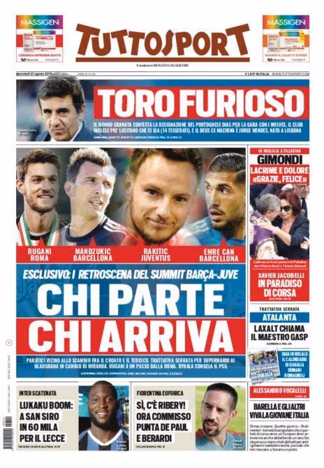 TORINO – Di seguito vi proponiamo l’apertura del quotidiano nazionale Tuttosport di oggi, 18/08/2019.