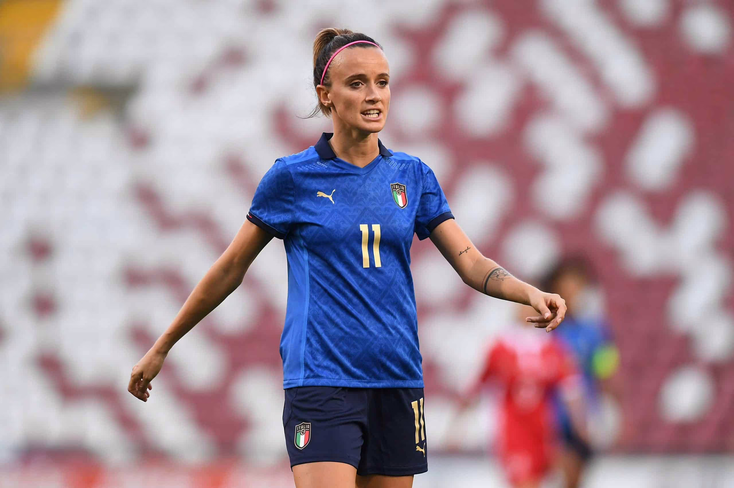 TRIESTE, ITALY - SEPTEMBER 17: Barbara Bonansea of Italy Women looks on during the FIFA Women's World Cup 2023 Qualifier group G match between Italy and Moldova at Stadio Nereo Rocco on September 17, 2021 in Trieste, Italy. (Photo by Alessandro Sabattini/Getty Images)