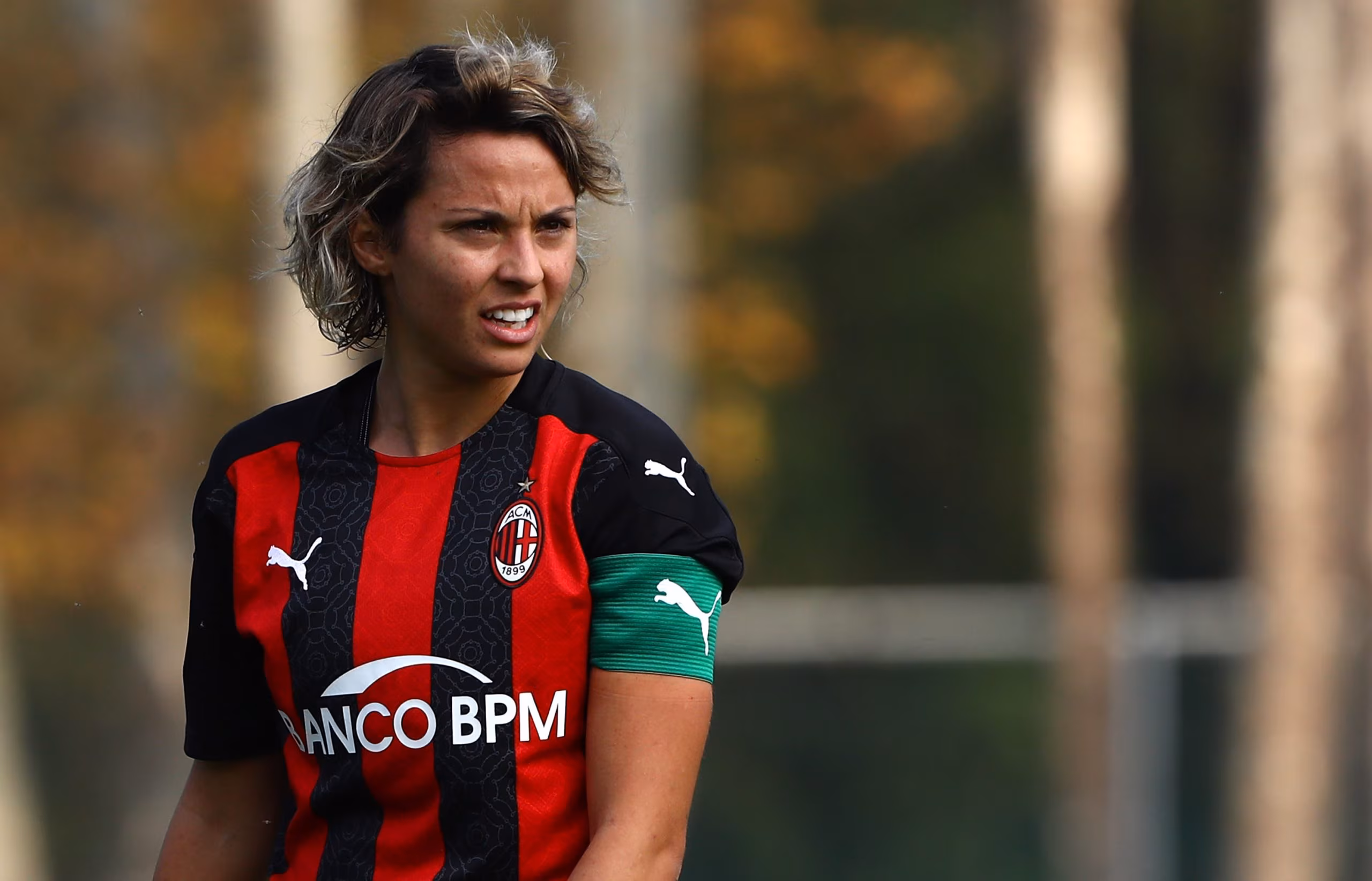 MILAN, ITALY - OCTOBER 18: Valentina Giacinti of AC Milan looks on during the Women Serie A match between AC Milan and FC Internazionale at Centro Sportivo Vismara on October 18, 2020 in Milan, Italy. (Photo by Marco Luzzani/Getty Images)