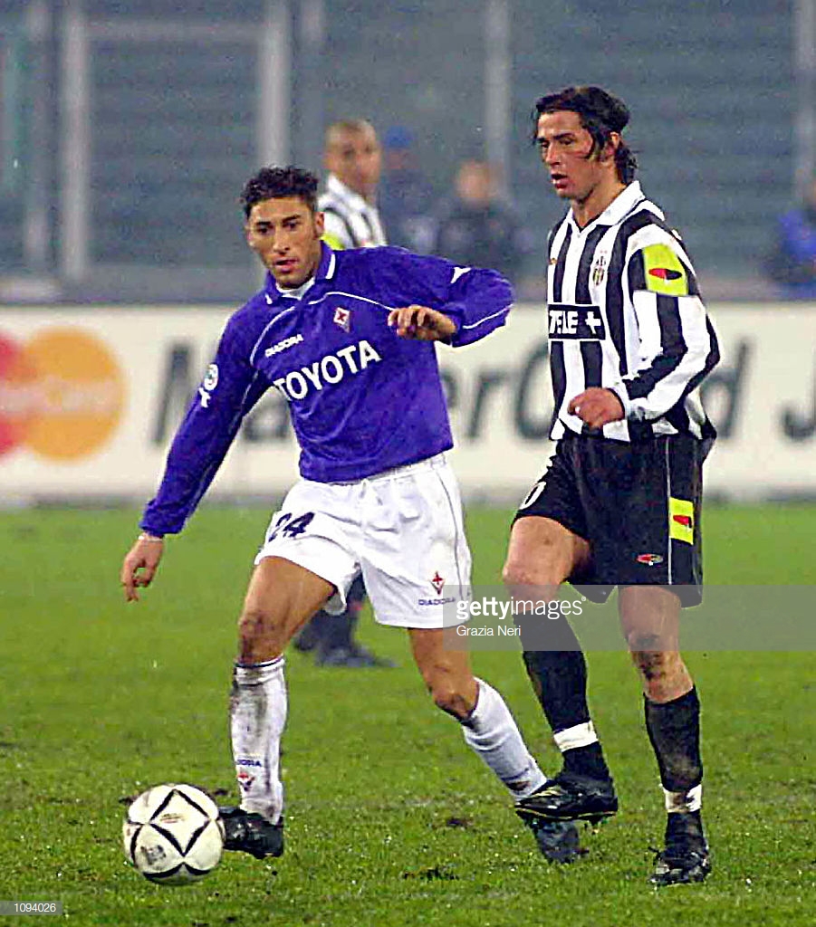 6 Jan 2001: Alessio Tacchinardi of Juventus and Christian Amoroso of Fiorentina challenge for the ball during the Serie A 13th round league match between Juventus and Fiorentina played at the Delle Alpi Stadium, Turin. Mandatory Credit: Grazia Neri/ALLSPORT