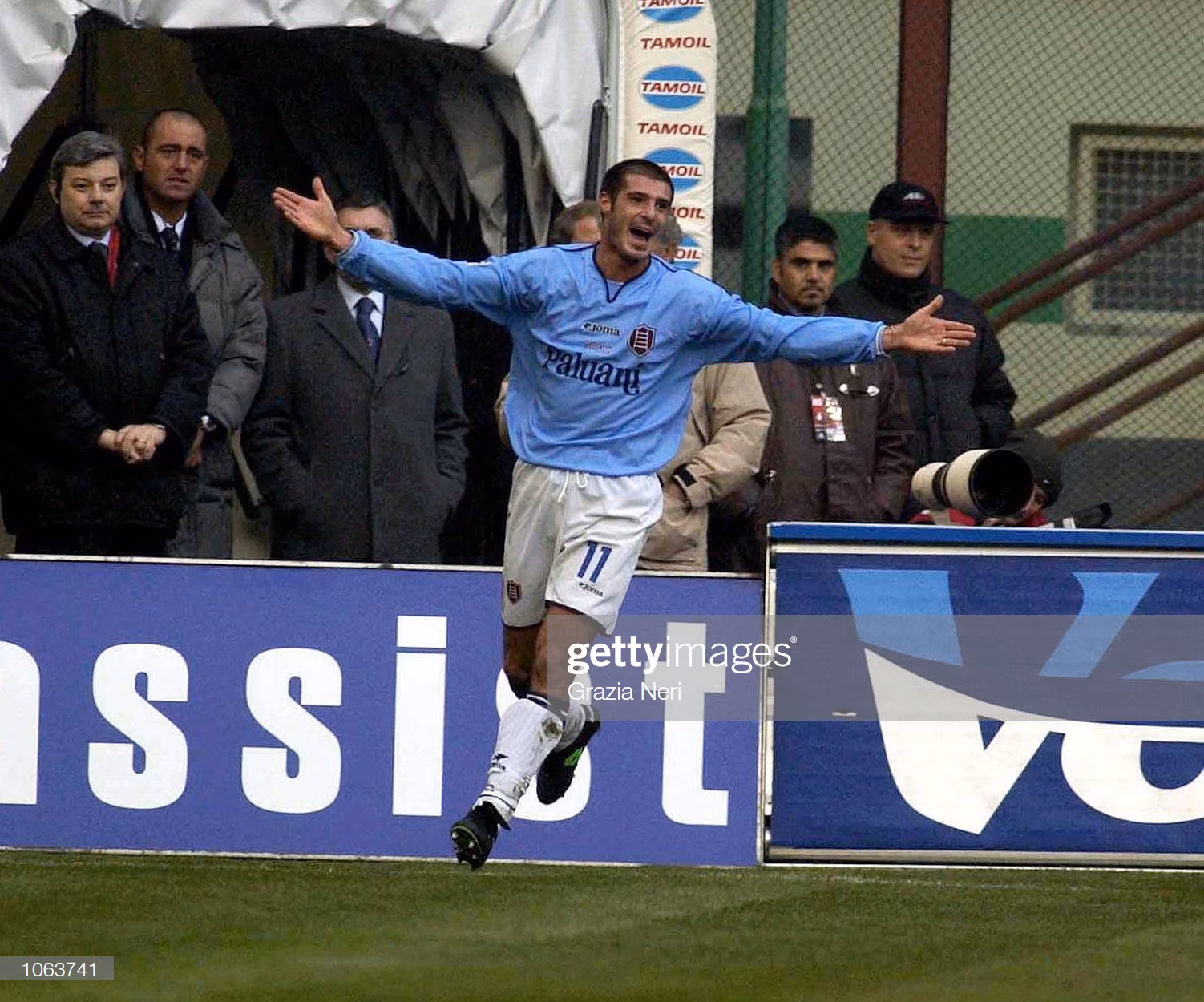02 Dec 2001: Massimo Marazzina of Chievo celebrates scoring during the Serie A match between AC Milan and Chievo, played at the San Siro Stadium, Milan. DIGITAL IMAGE Mandatory Credit: Grazia Neri/ALLSPORT