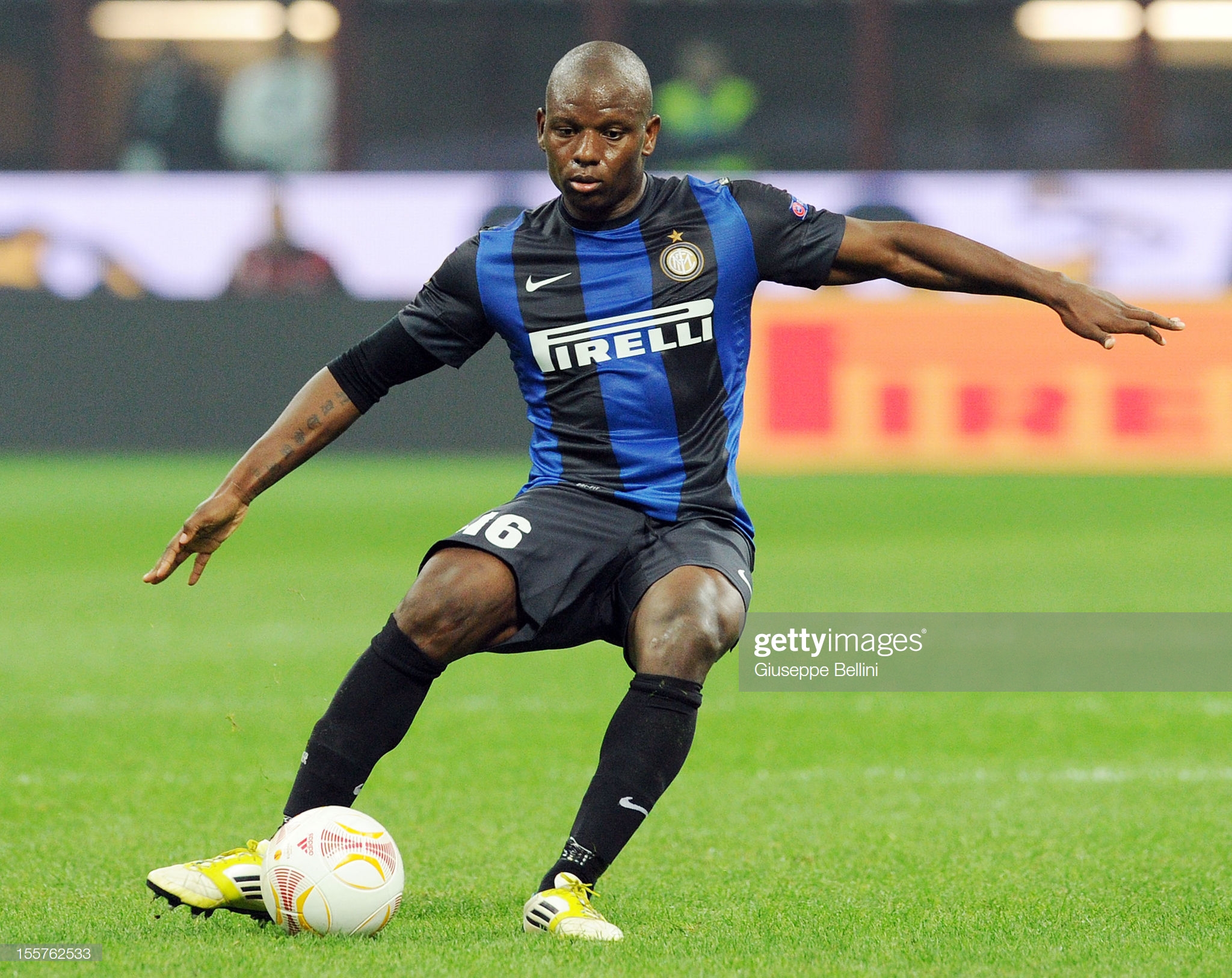 MILAN, ITALY - OCTOBER 25: Gaby Mudingayi of Inter in action during the UEFA Europa League group H match between FC Internazionale Milano and FK Partizan on October 25, 2012 in Milan, Italy. (Photo by Giuseppe Bellini/Getty Images)