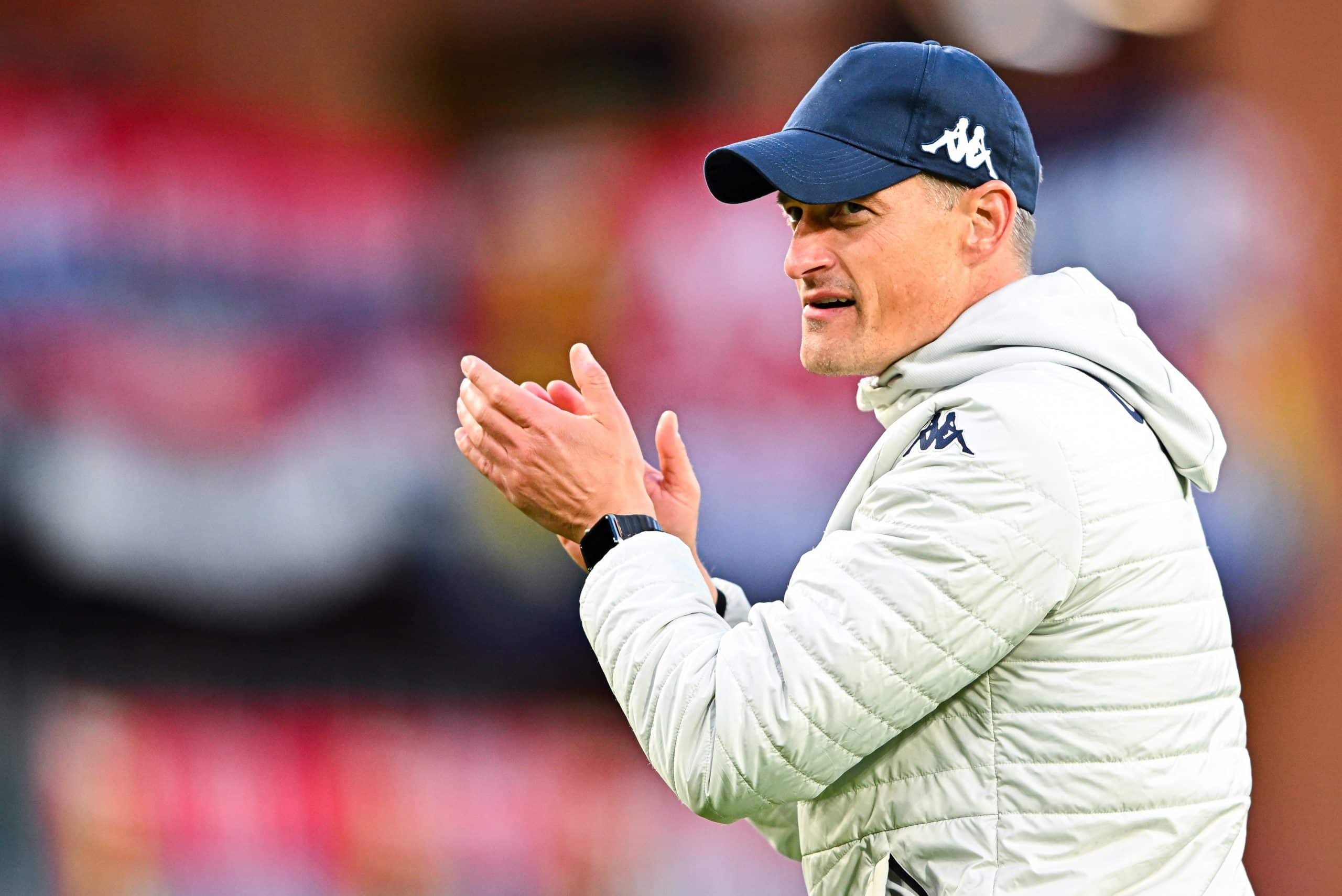GENOA, ITALY - APRIL 24: Alexander Blessin head coach of Genoa greets the crowd after the Serie A match between Genoa CFC and Cagliari Calcio at Stadio Luigi Ferraris on April 24, 2022 in Genoa, Italy. (Photo by Getty Images)