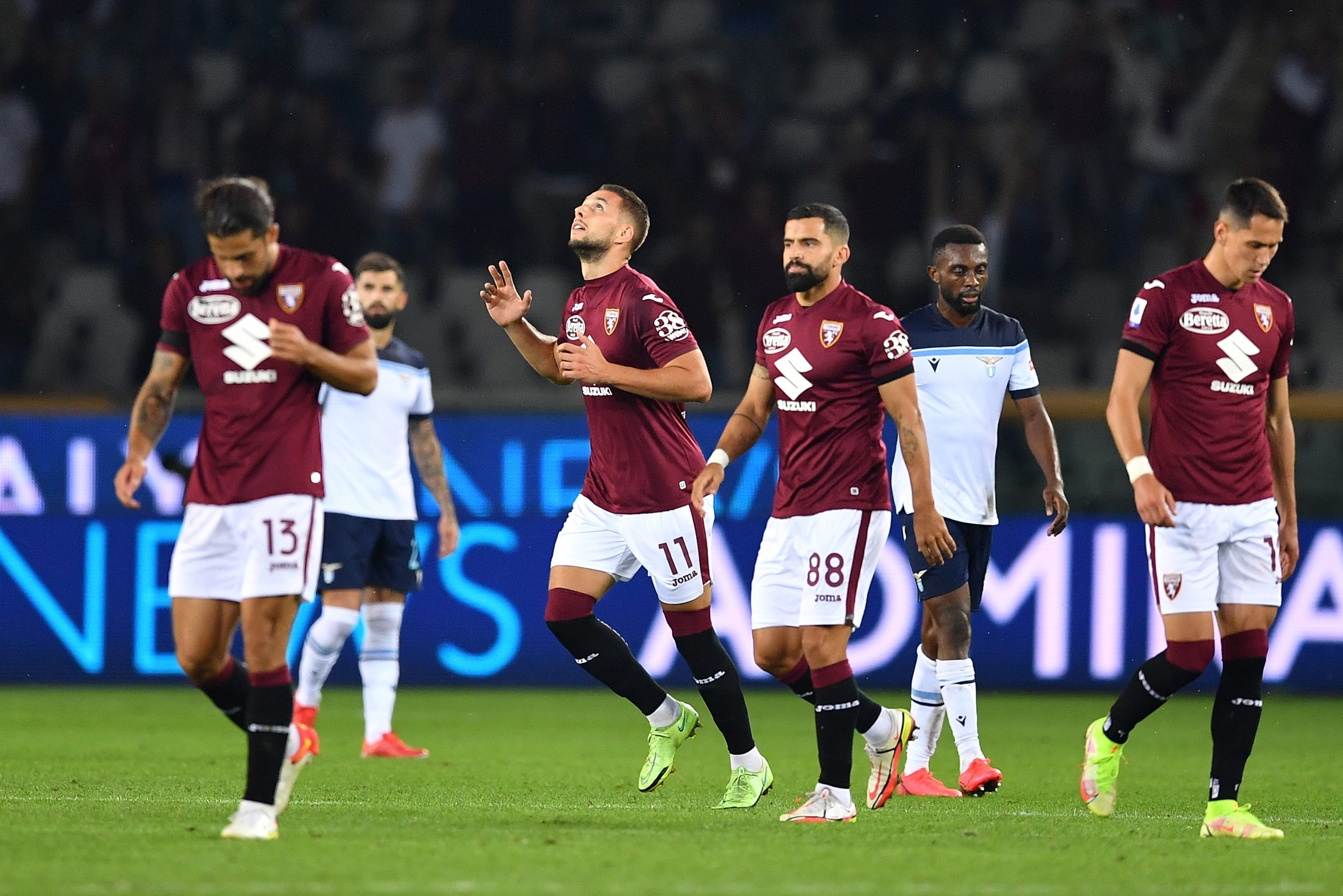 TURIN, ITALY - SEPTEMBER 23: Marko Pjaca (C) of Torino FC celebrates the opening goal during the Serie A match between Torino FC v SS Lazio at Stadio Olimpico di Torino on September 23, 2021 in Turin, Italy. (Photo by Valerio Pennicino/Getty Images)
