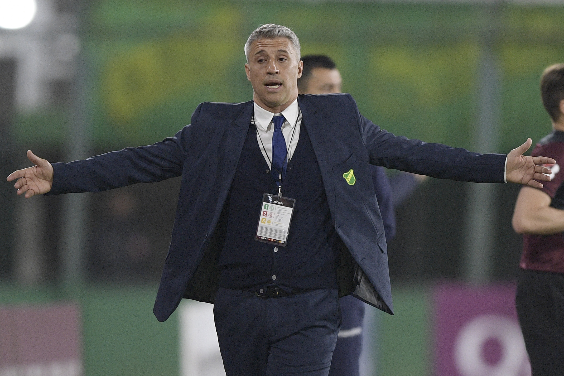 BUENOS AIRES, ARGENTINA - SEPTEMBER 23: Hernan Crespo coach of Defensa y Justicia shouts instructions to his players during a group G match of Copa CONMEBOL Libertadores between Defensa y Justicia and Olimpia at Norberto Tomaghello Stadium on September 23, 2020 in Florencio Varela,Buenos Aires, Argentina. (Photo by Juan Mabromata - Pool/Getty Images)