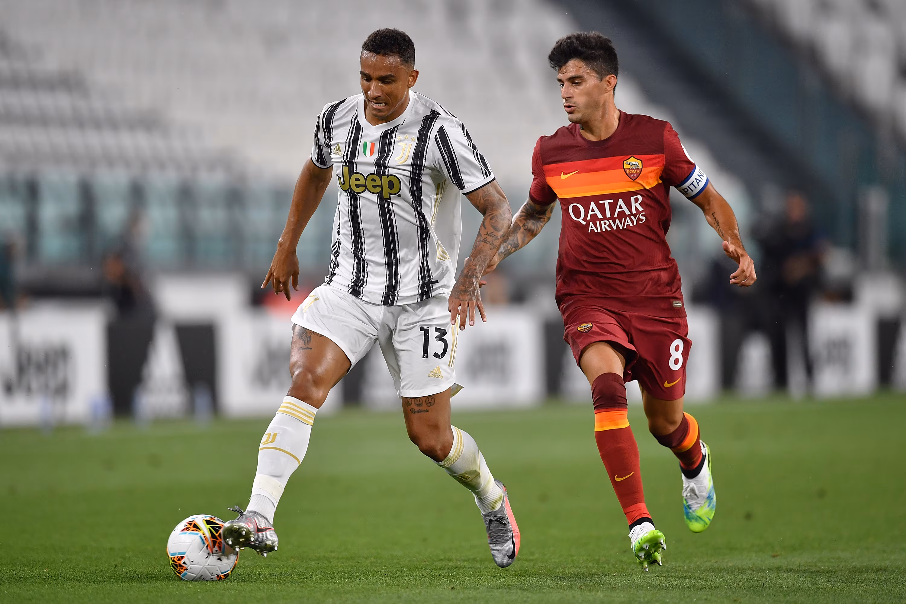 Danilo in azione con la maglia della Juventus contro la Roma