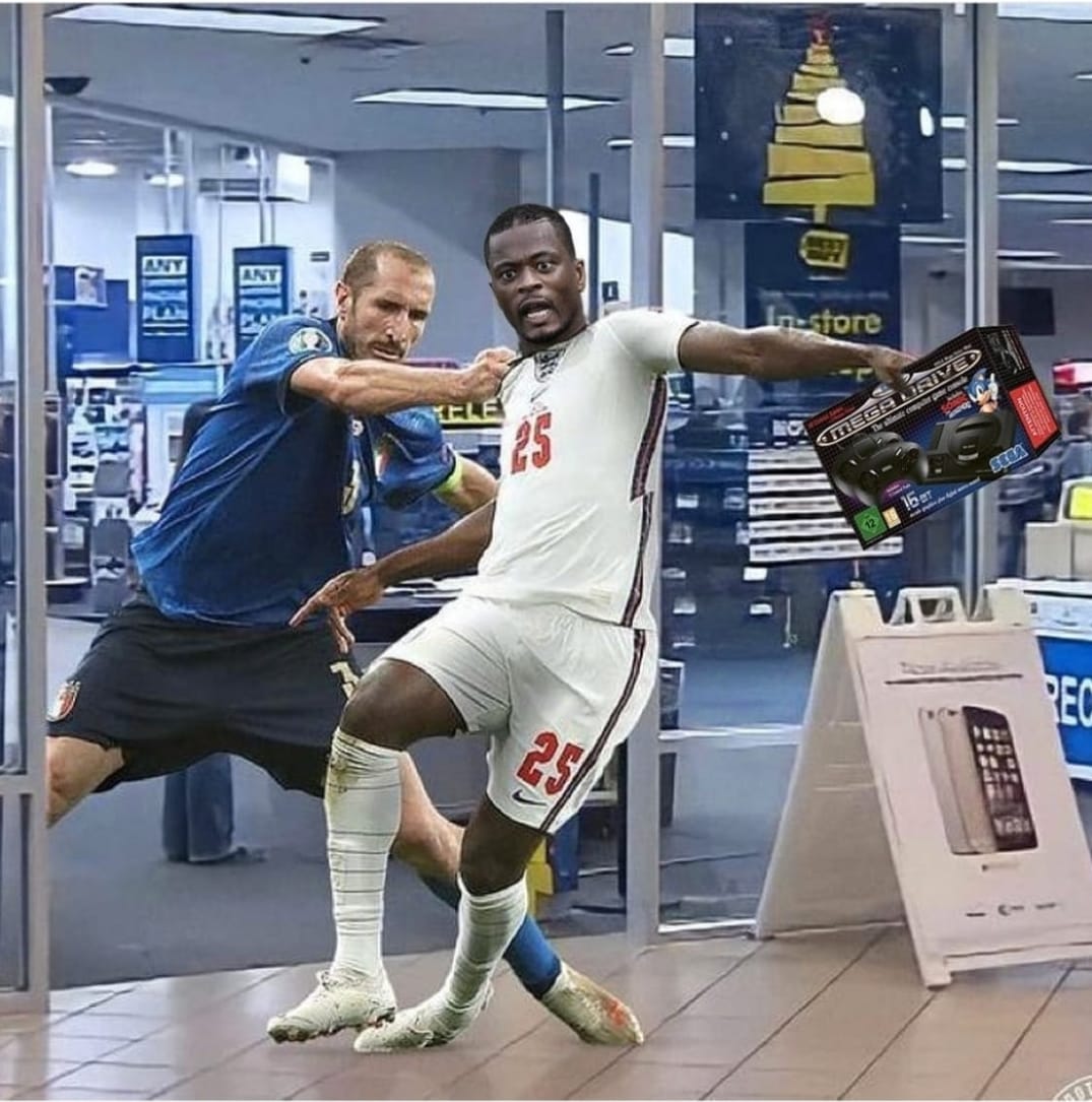 Ma ancora oggi la trattenuta di Chiellini torna far rumore e questa volta ci ha pensato un ex compagno del numero 3 della Juve. Si tratta di Patrice Evra, sempre attivo sui social, dove ha pubblicato la sua ultima ‘genialata’. L’ex giocatore francese ha infatti postato una foto ricreata da lui, dove vi è raffigurato il momento del fallo, con ‘Chiellini che trattiene’ e lo stesso Evra che impersona la parte di Saka ma nei panni di un ladro che prova a rubare all’interno di un negozio. Lo stesso Era ci ha poi scherzato su cosi: “Quando ero piccolo e rubavo al negozio, la sicurezza era come te, fratello mio”. Il tutto ovviamente è stato fatto in maniera ironica, per continuare a divertire i tifosi juventini e anche tutti i suoi fan di Instagram.