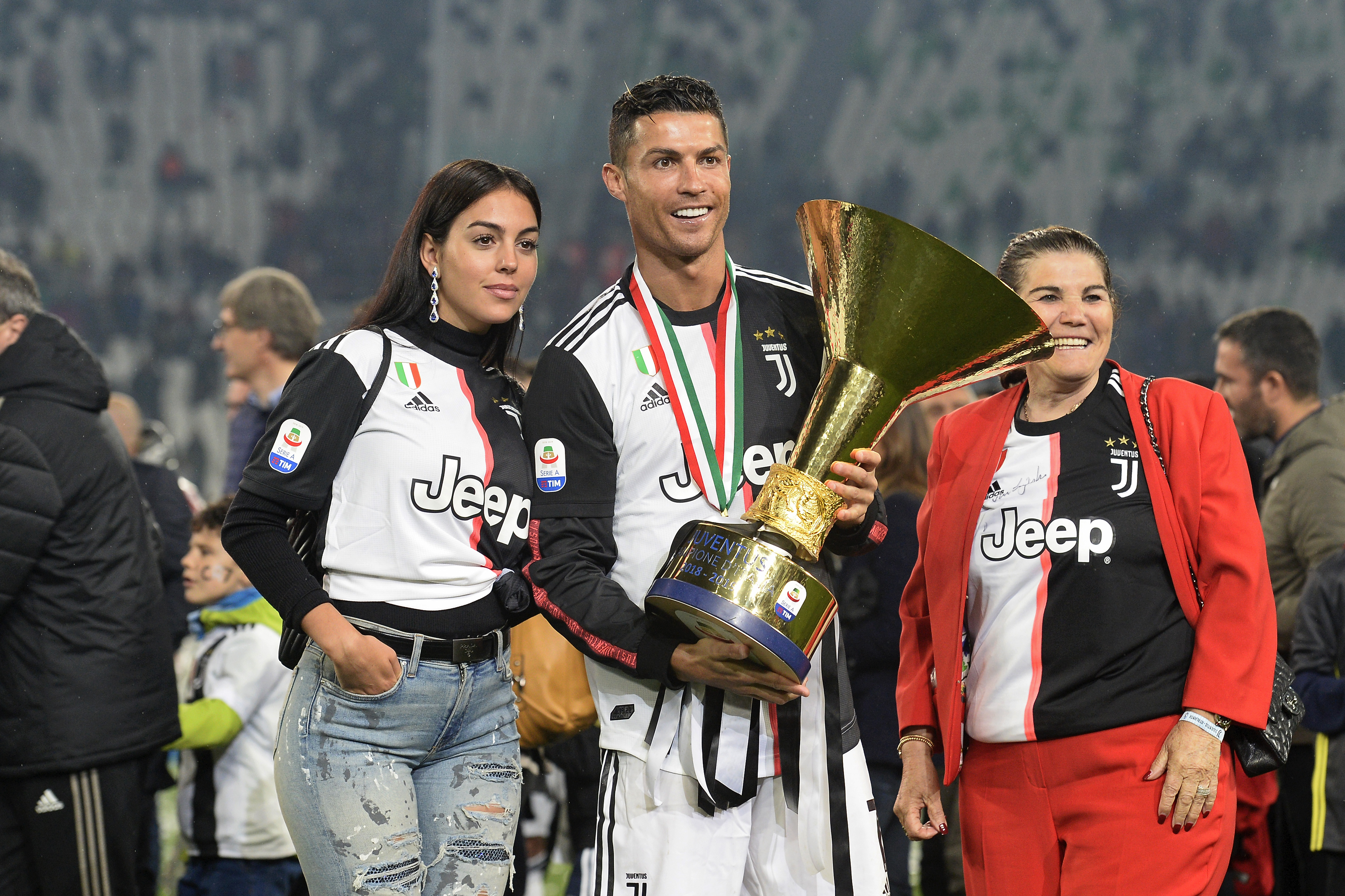 Cristiano Ronaldo in compagnia della splendida Georgina Rodriguez e di sua madre Dolores, durante la premiazione dello scudetto dello scorso anno.