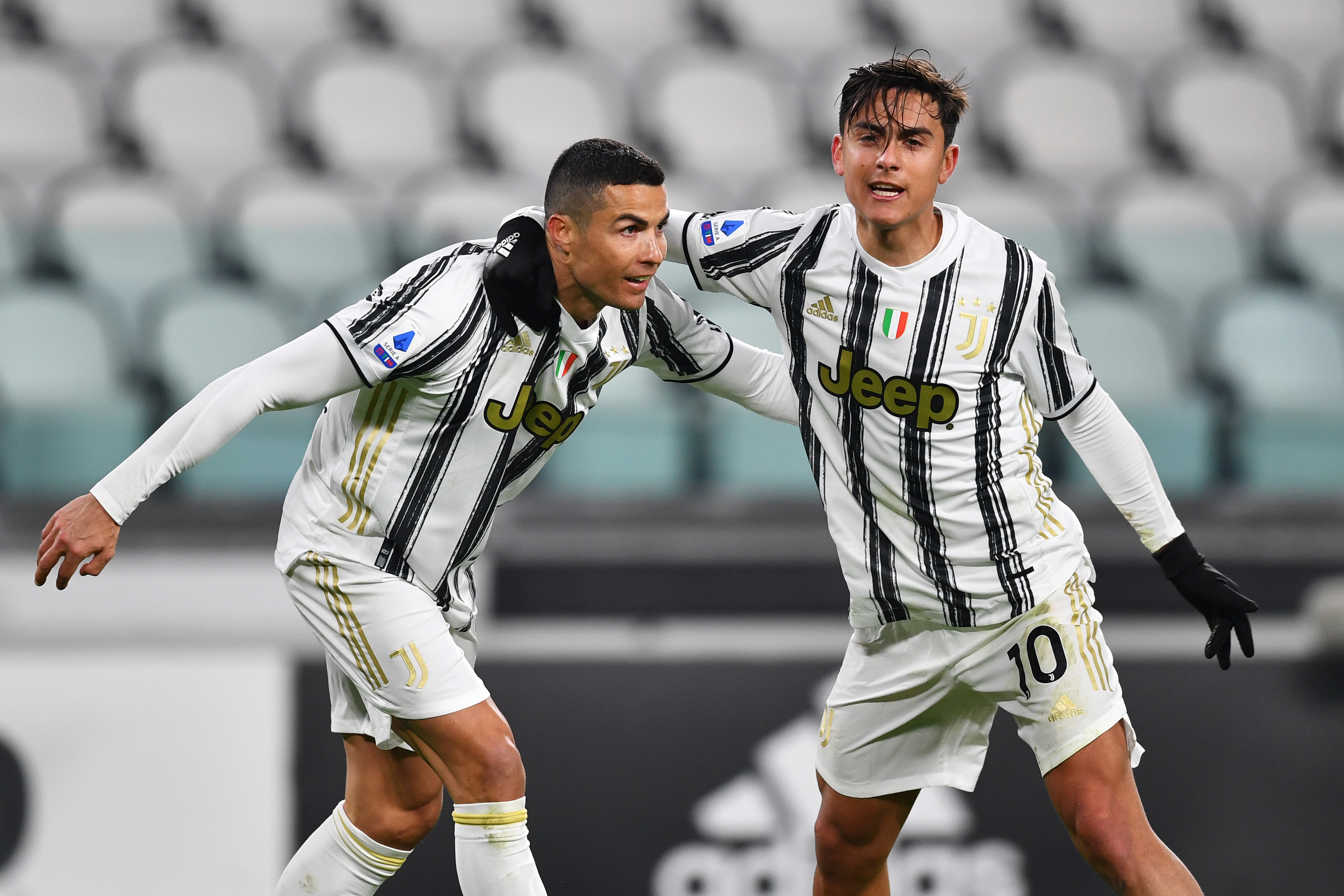 Ronaldo e Dybala esultano contro l'Udinese