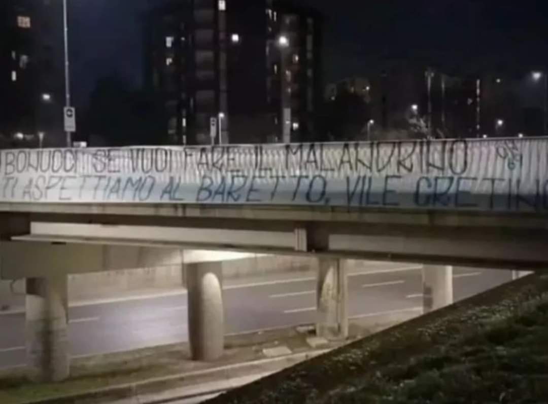 Ma a tener banco in questi ultimi giorni è stato soprattutto il concitato finale di gara della sfida contro l’Inter, quando il difensore viterbese Leonardo Bonucci è venuto a contatto con Cristiano Mozzillo, membro dello staff dell’Inter. Il gesto del Campione d’Europoa gli è costata un’ammenda di 10.000 euro ma i tifosi nerazzurri non hanno gradito e gridano vendetta all’indirizzo del numero 19. Questa notte infatti, per le strade di Milano è stato esposto uno striscione che recita cosi: “Bonucci: se vuoi fare il malandrino ti aspettiamo al baretto, vile cretino“.