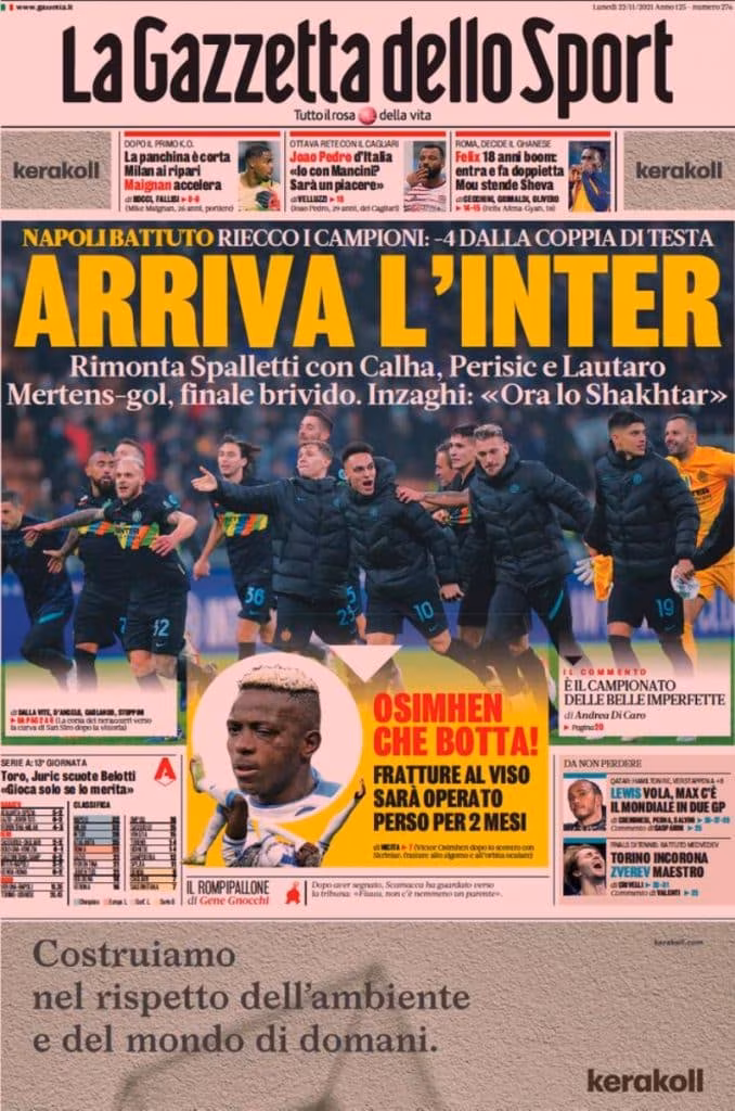 Con la vittoria dell’Inter sul Napoli e quella della Fiorentina sul Milan, il campionato di Serie A è completamente riaperto. Entrambe le squadre in testa alla classifica hanno perso tre punti e ora i nerazzurri sono a sole quattro lunghezze di distanza.