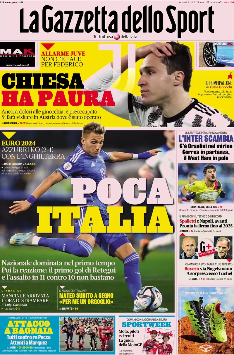 La redazione di Juvenews.eu vi augura il buongiorno in questo venerdì 24 marzo 2023 e vi dà il benvenuto nella consueta rassegna stampa mattutina.