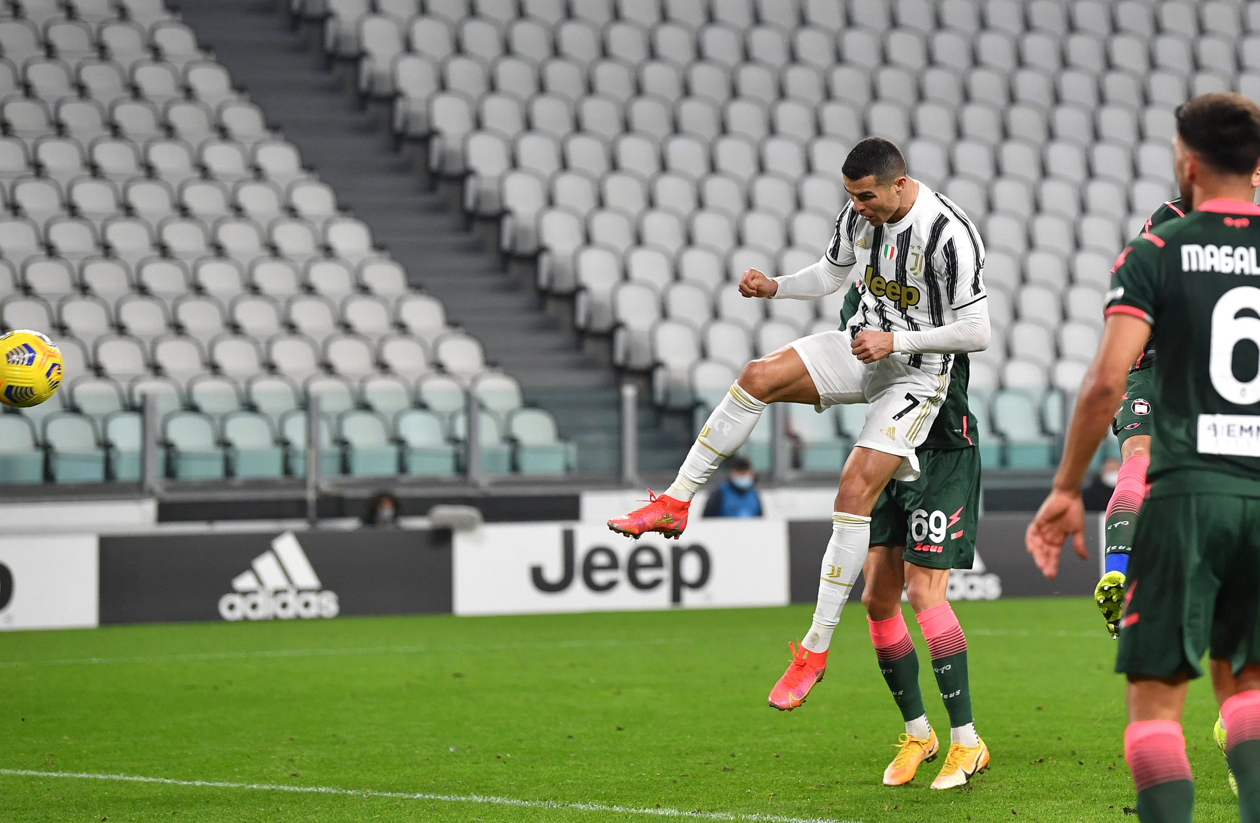 CR7 segna il primo dei due gol al Crotone