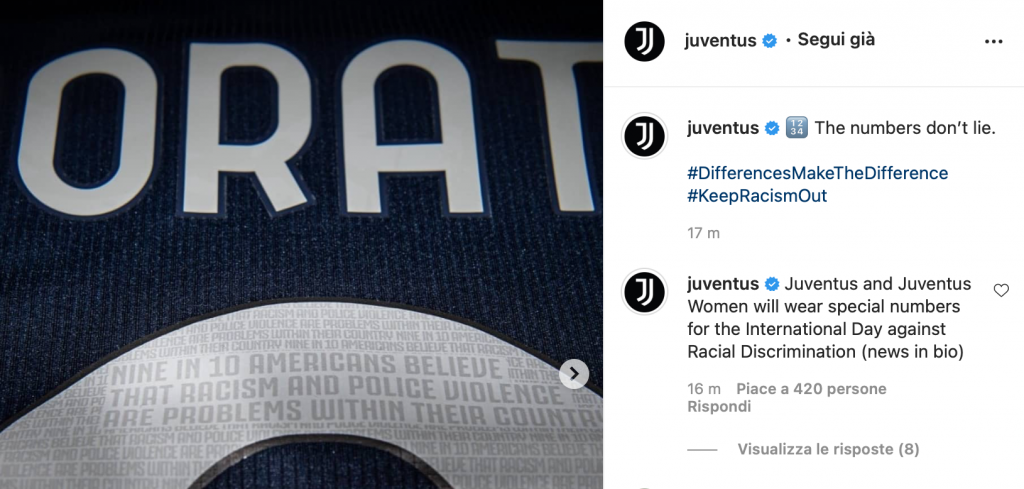 “La Juventus è da tempo in prima linea nella lotta alle discriminazioni.