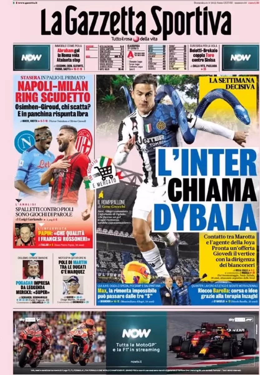 A questo punto la società dovrà decidere se tenerlo o se lasciarlo andar via. La condizione fisica preoccupa e con l’arrivo di Vlahovic la Joya non è più il fulcro del progetto bianconero.