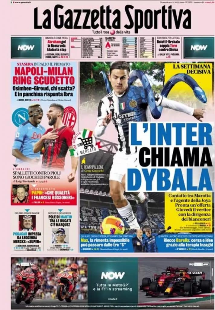Nel frattempo si susseguono i discorsi attorno al futuro di Paulo Dybala. Il fantasista argentino, che è finalmente vicino al ritorno in campo, ha il contratto in scadenza a giugno 2022 e per il momento le trattative per il rinnovo non sembrano essere vicine alla fumata bianca.