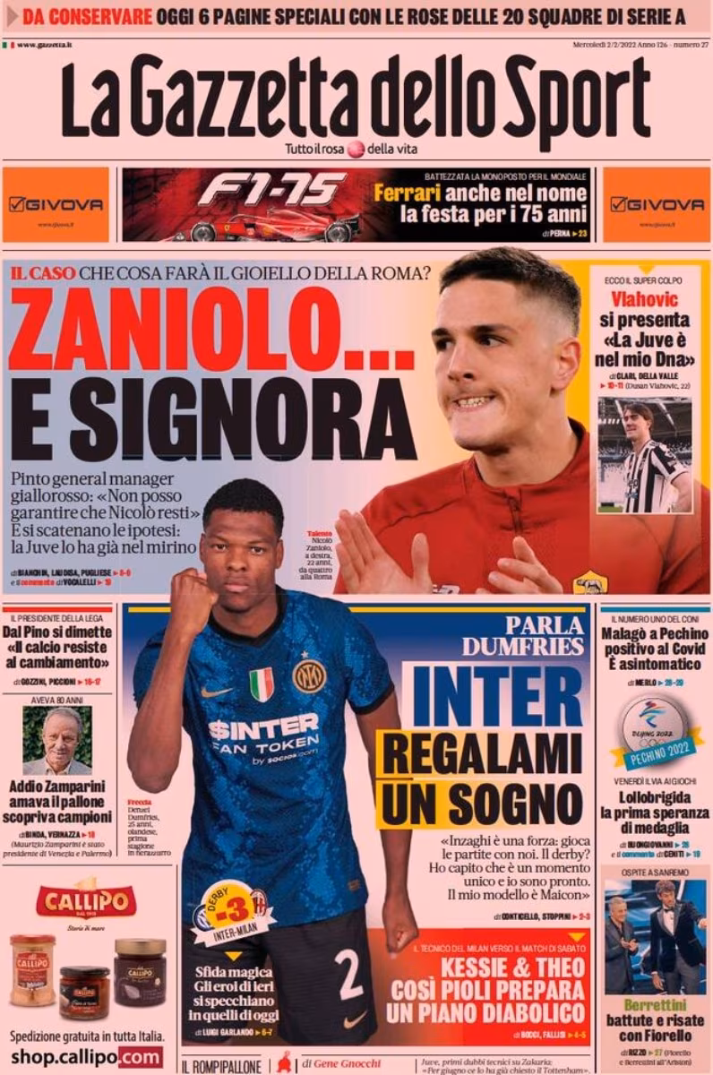 Questa mattina La Gazzetta dello Sport ha subito intitolato: “Zaniolo… E Signora”. I bianconeri sarebbero sulle tracce del promettente attaccante italiano, possibile rinforzo in vista del mercato estivo.