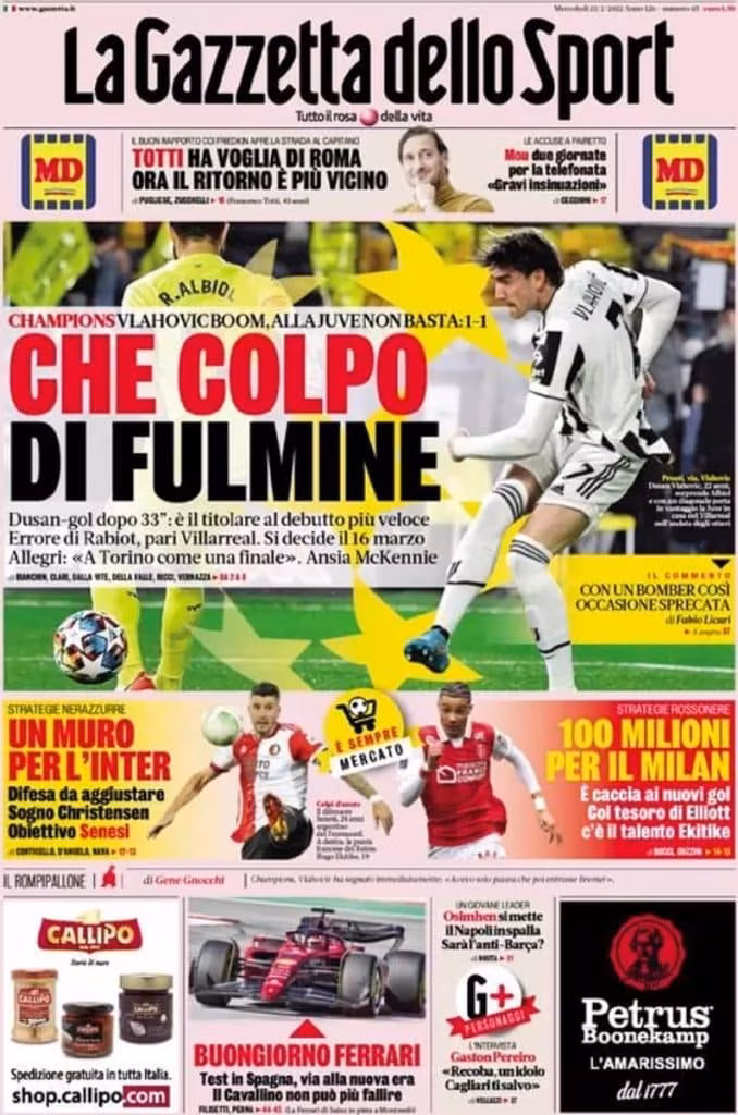 In attacco, Vlahovic dopo appena 32 secondi di gioco porta in vantaggio la Juventus, confermandosi un giocatore di altissimo livello.