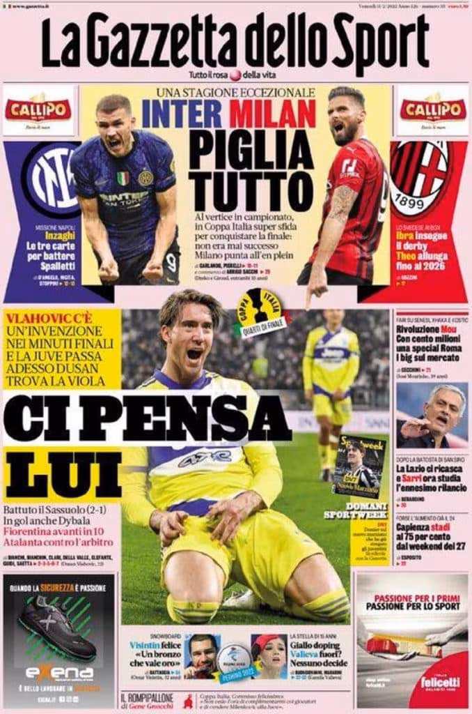 La squadra di Massimiliano Allegri vola quindi in semifinale dove affronterà la Fiorentina. Vlahovic contro il suo recente passato, un incrocio tutt’altro che banale
