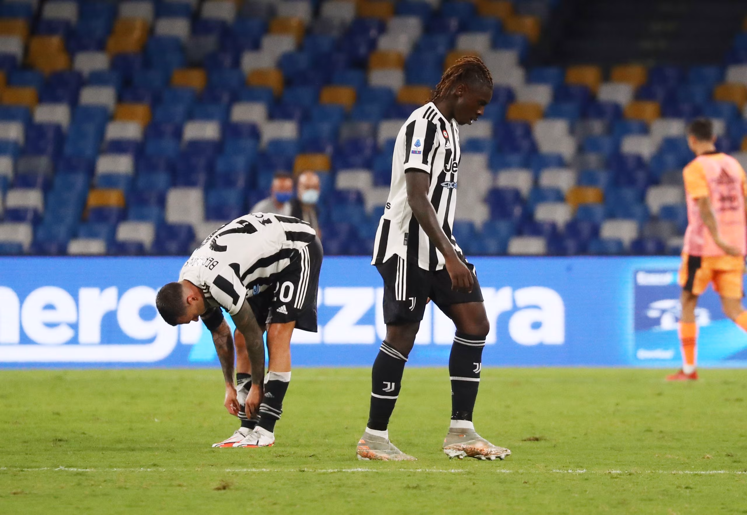 NAPLES, ITALY - SEPTEMBER 11: Moise Kean of Juventus shows his dejection after the Serie A match between SSC Napoli and Juventus at Stadio Diego Armando Maradona on September 11, 2021 in Naples, Italy. (Photo by Maurizio Lagana/Getty Images)