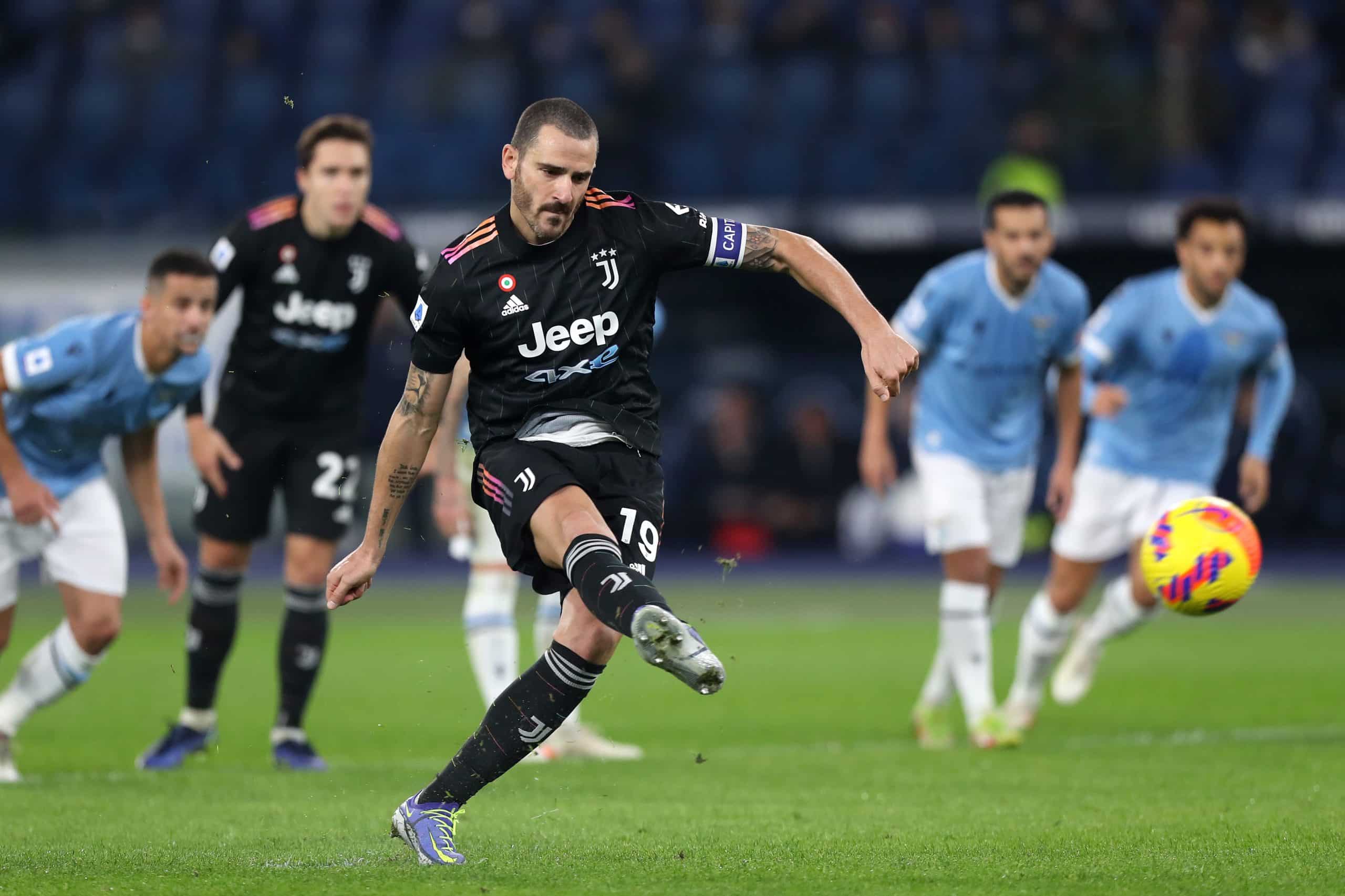 ROME, ITALY - NOVEMBER 20: Leonardo Bonucci of Juventus scores their team's first goal during the Serie A match between SS Lazio and Juventus at Stadio Olimpico on November 20, 2021 in Rome, Italy. (Photo by Paolo Bruno/Getty Images)