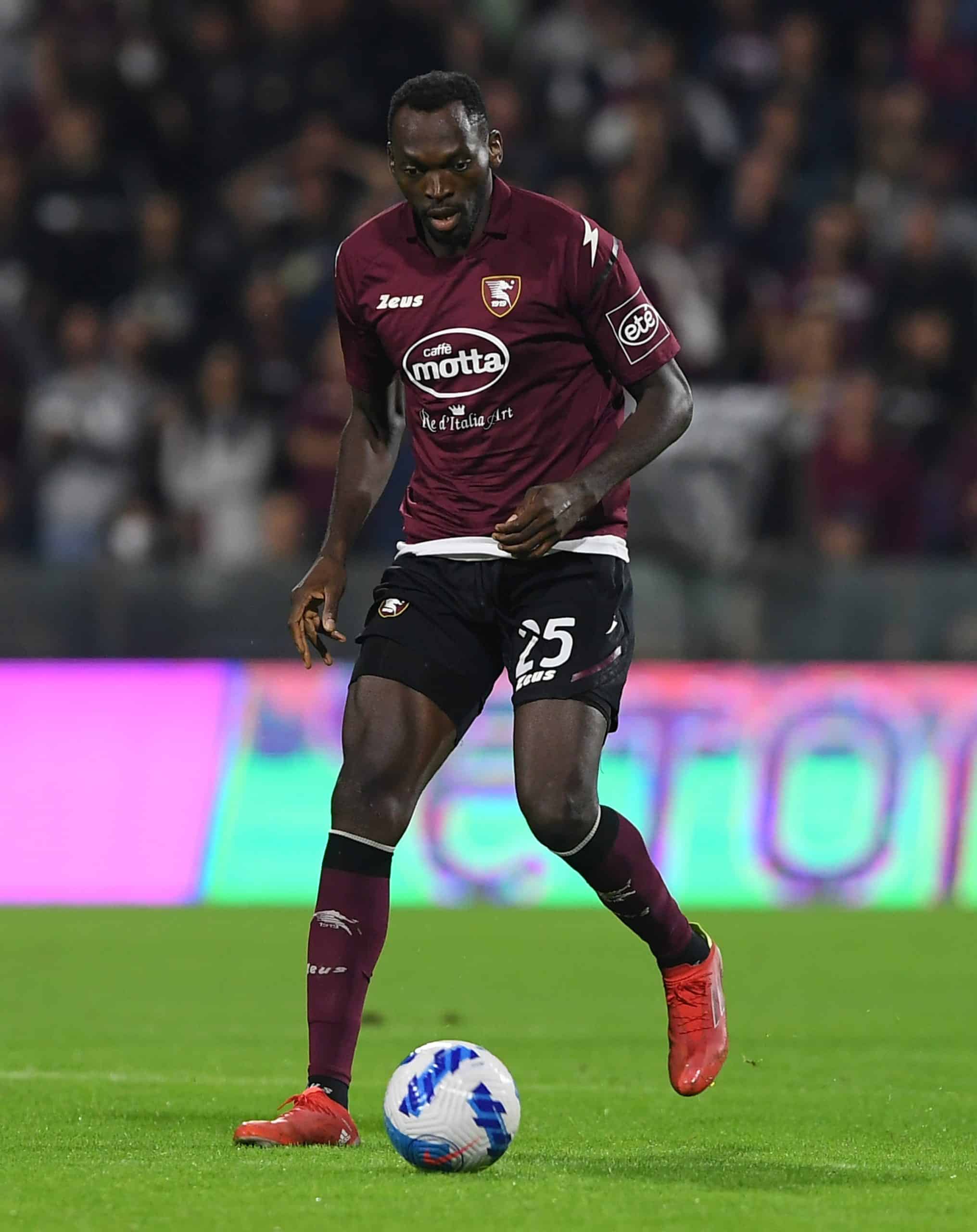 SALERNO, ITALY - OCTOBER 31: Nwankwo Simy of US Salernitana during the Serie A match between US Salernitana and SSC Napoli at Stadio Arechi on October 31, 2021 in Salerno, Italy. (Photo by Francesco Pecoraro/Getty Images)