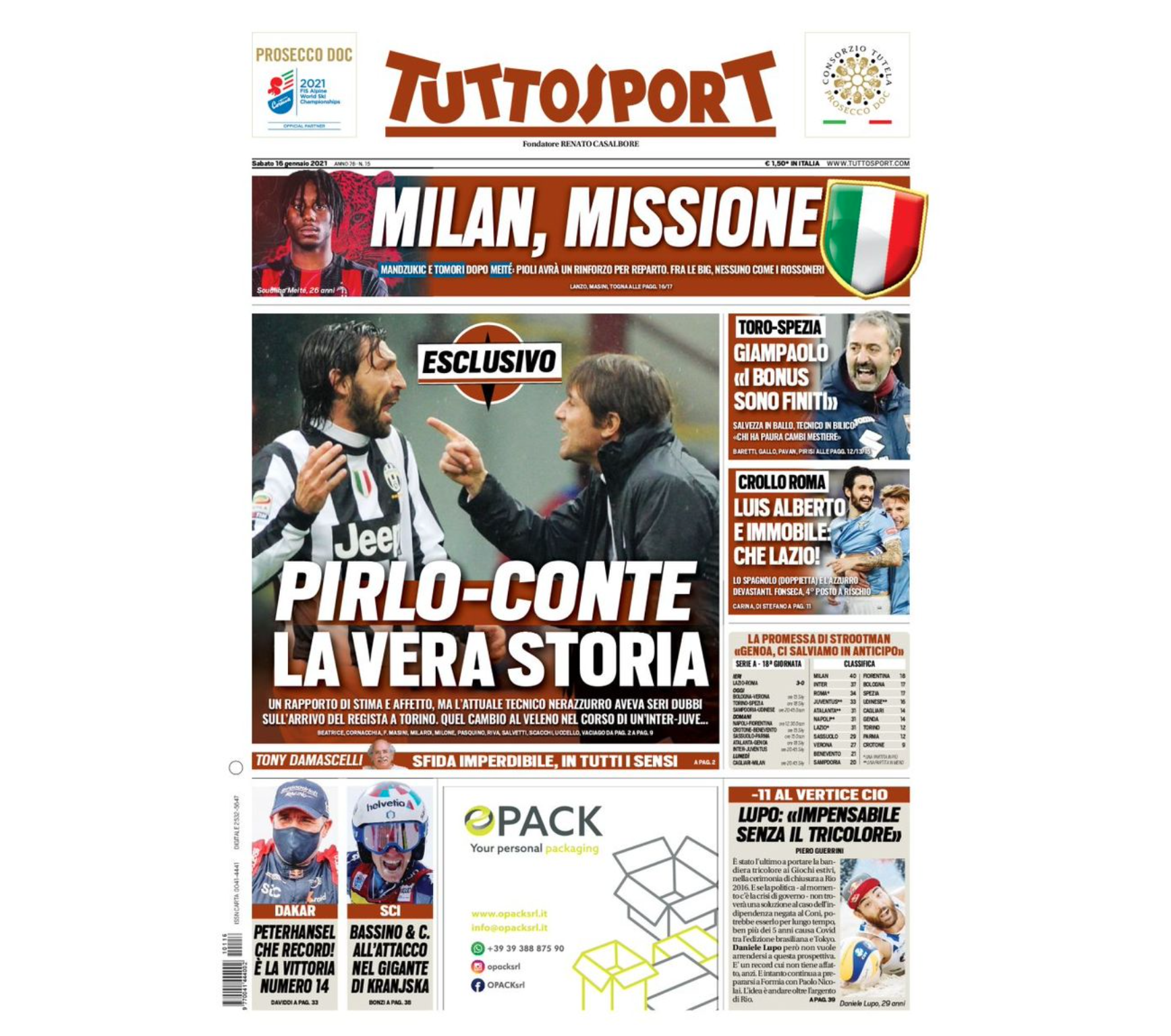 TORINO – La prima pagina di Tuttosport in edicola oggi, dedica il suo taglio alto al Milan: “Milan, missione Scudetto” titola il giornale “Mandzukic e Tomori dopo Meitè: Pioli avrà un rinforzo per reparto. Fra le big, nessuno come i rossoneri”. La parte centrale della pagina è dedicata all’esclusiva riportata dal giornale: “Pirlo-Conte. La vera storia”. Il giornale si concentra sul duello tra i due tecnici, che oggi parleranno in conferenza stampa per presentare la partita in programma domani era a San Siro. “Un rapporto di stima e di affetto, ma l’attuale tecnico nerazzurro aveva seri dubbi sull’arrivo del regista a Torino”.