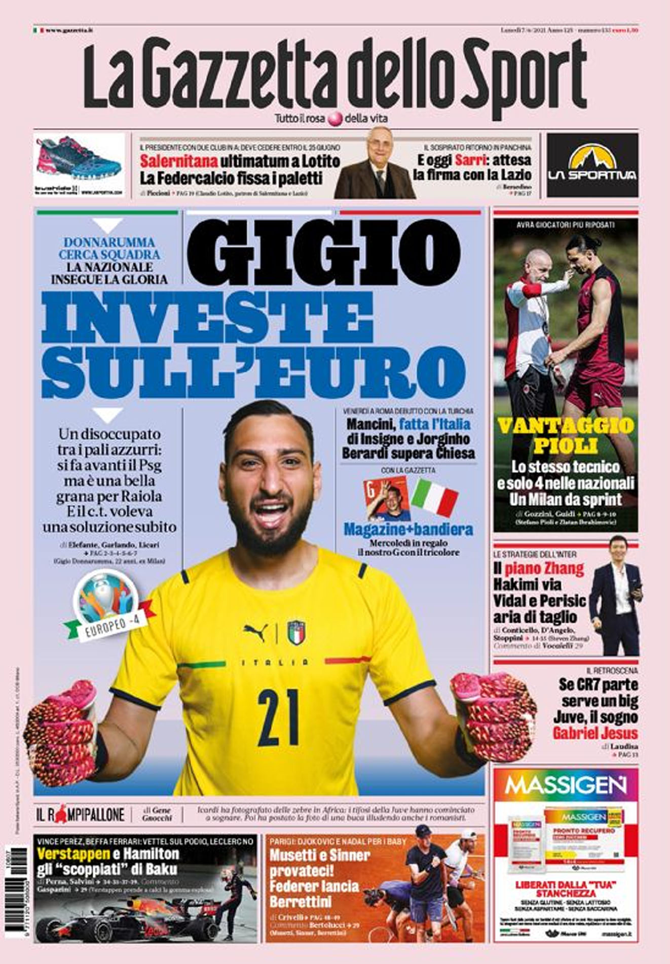 La rassegna stampa di oggi si apre con l’edizione odierna de La Gazzetta dello Sport, che dedica grande spazio al futuro di Gigio Donnarumma. A questo punto sembra sempre più probabile che il portiere della Nazionale inizierà l’Europeo senza sapere in che squadra giocherà la prossima stagione. Dopo la rottura con il Milan, Raiola sta sondando il terreno tra le varie pretendenti, che sperano di ingaggiare uno dei portieri più promettenti della sua generazione a parametro zero. La Juventus è ancora in corsa per il giocatore, ma potrebbe dover fare attenzione all’inserimento del PSG. Rimanendo in tema mercato di casa Juve, la rosea accosta il nome di Gabriel Jesus ai bianconeri. Il brasiliano del Manchester City potrebbe essere uno dei possibili sostituti in attacco in caso di partenza di Cristiano Ronaldo, il cui futuro è ancora tutto da stabilire.