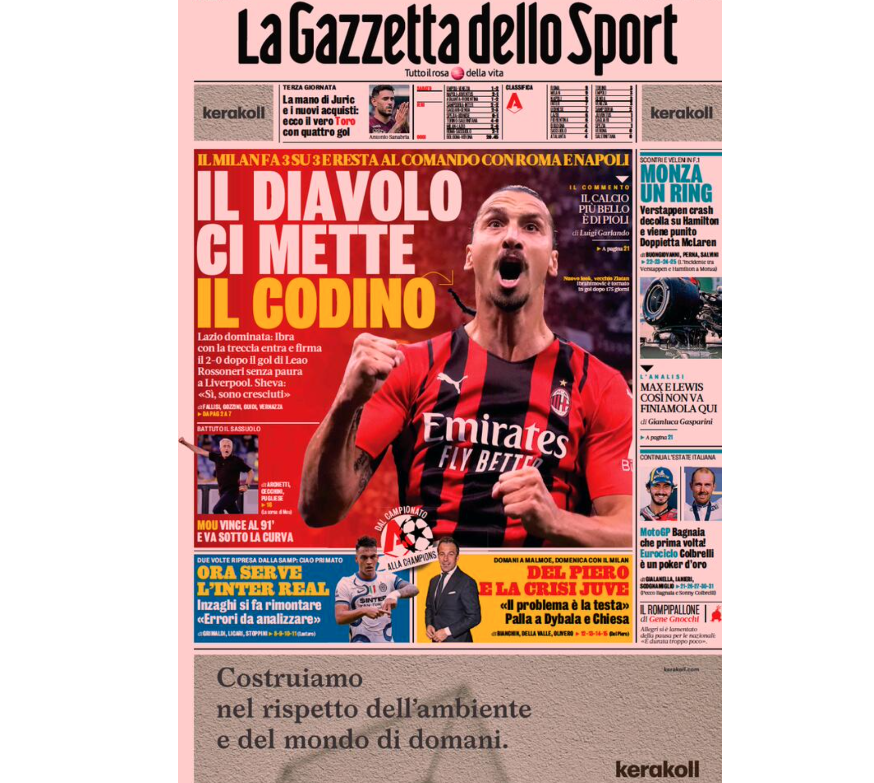 Le prime pagine dei giornali sportivi