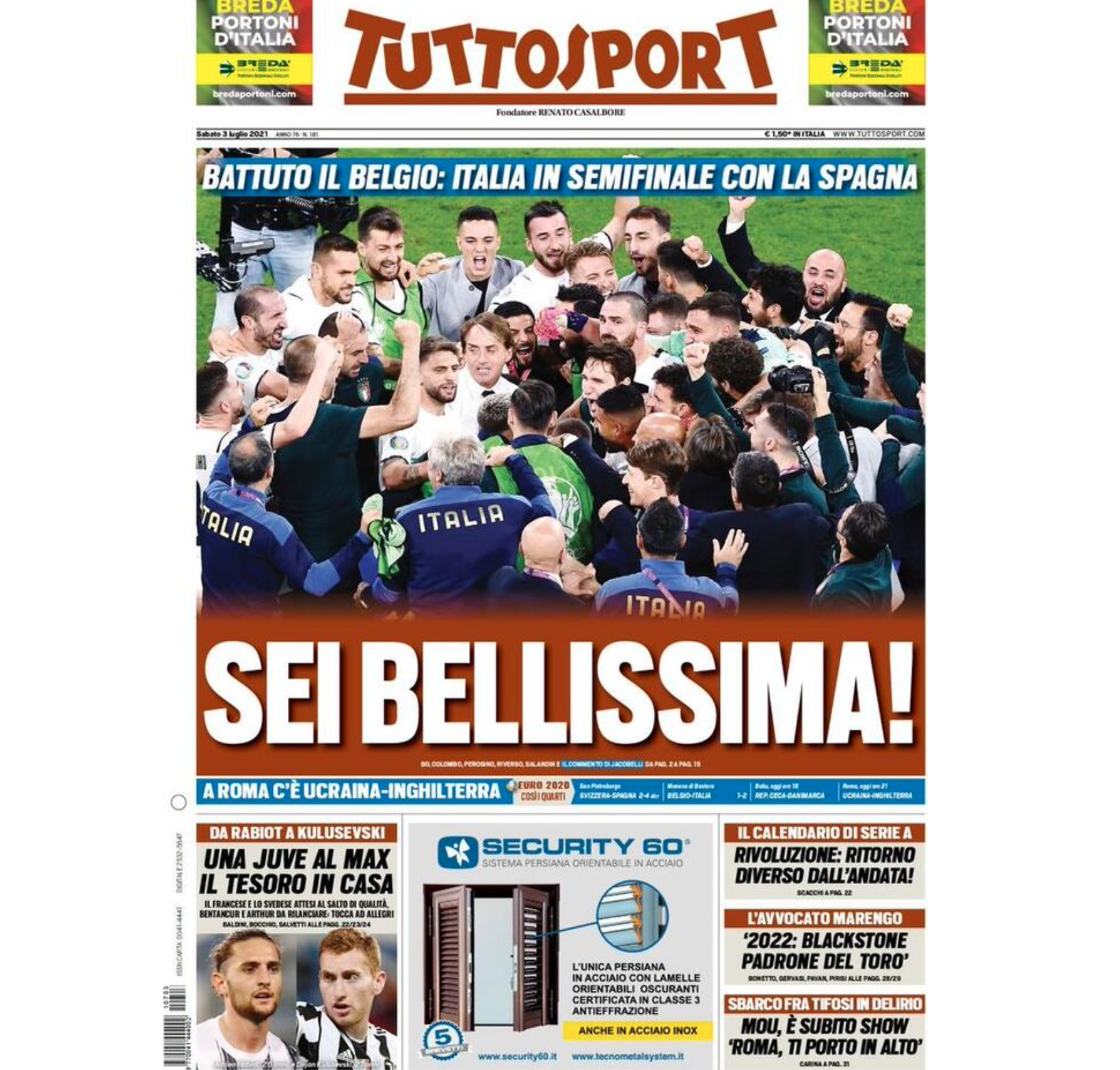 La prima pagina de Il Corriere dello Sport è dedicata alla vittoria dell’Italia: “Dimmi che è vero!”