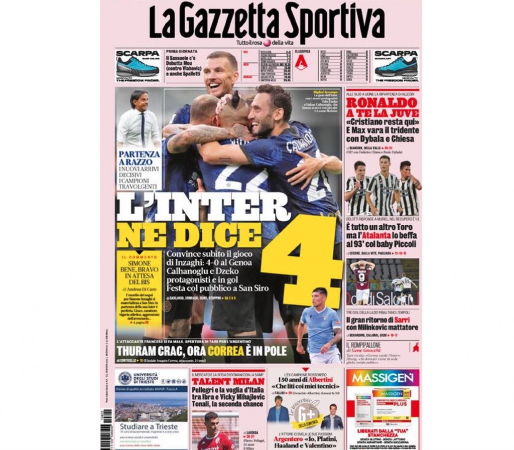 La prima pagina de La Gazzetta dello Sport