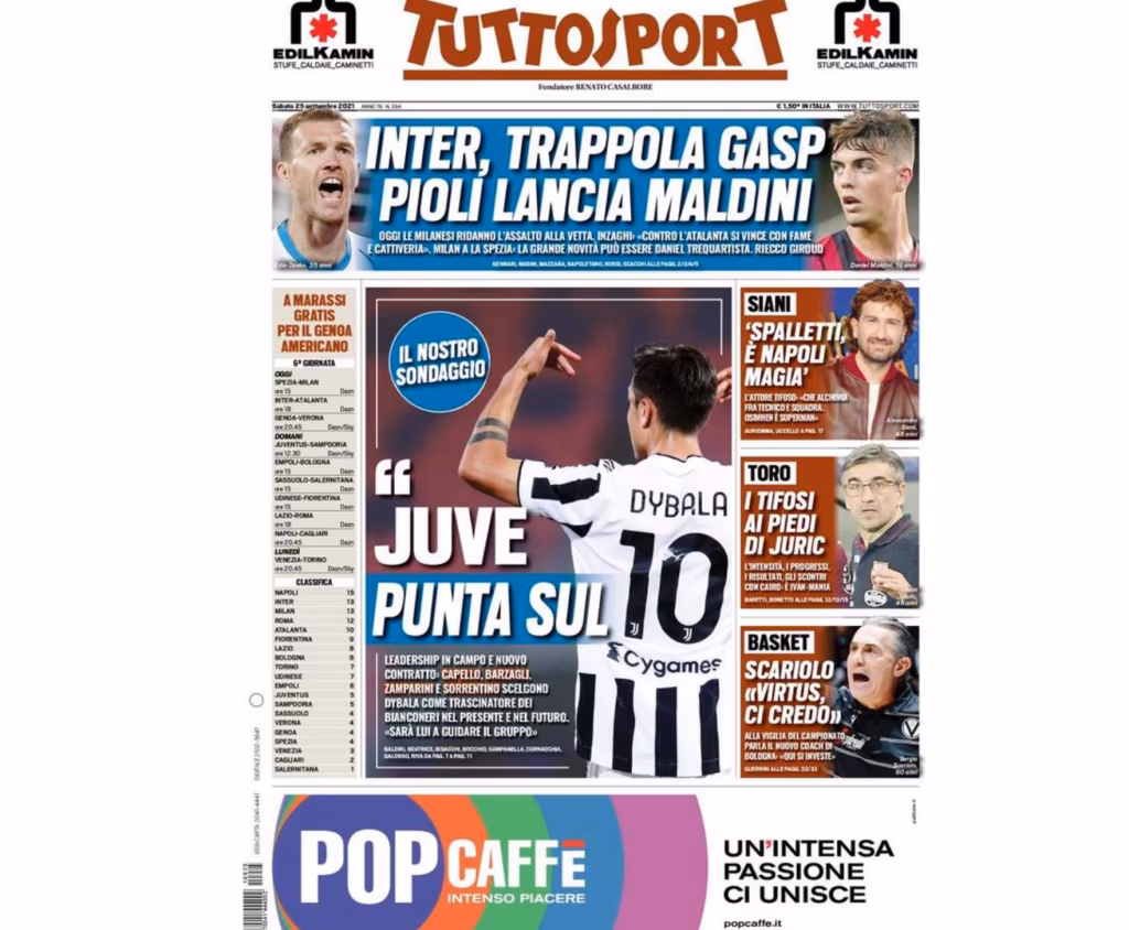 Ecco le prime pagine dei giornali sportivi in edicola oggi, sabato 25 settembre.