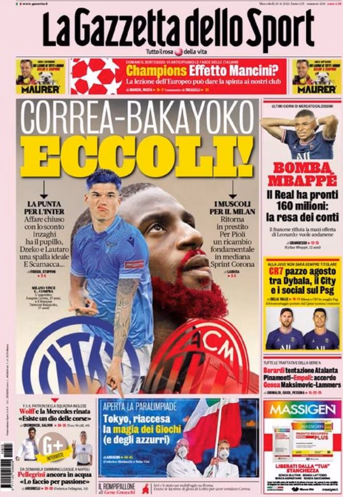 Home / Juve News Le prime pagine dei quotidiani sportivi di oggi redazionejuvenews – 25 Agosto, 07:30 Le prime pagine dei quotidiani sportivi di oggi Le prime pagine dei quotidiani sportivi di oggi