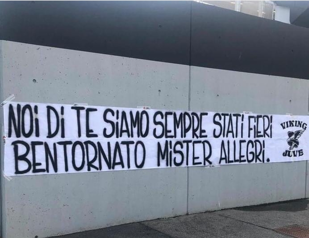 In attesa della conferenza stampa di presentazione, gli ultrà bianconeri hanno trovato il modo di far sentire tutto il loro calore ad Allegri e lo hanno fatto esponendo uno sttiscione all’esterno del JTC. La frase è la seguente: “Noi di te siamo sempre stati fieri. Bentornato mister Allegri”. Se ci fossero stati ancora dei dubbi sul legame che si era instaurato con il suo popolo, ora sembra evidente che siano risolti del tutto.