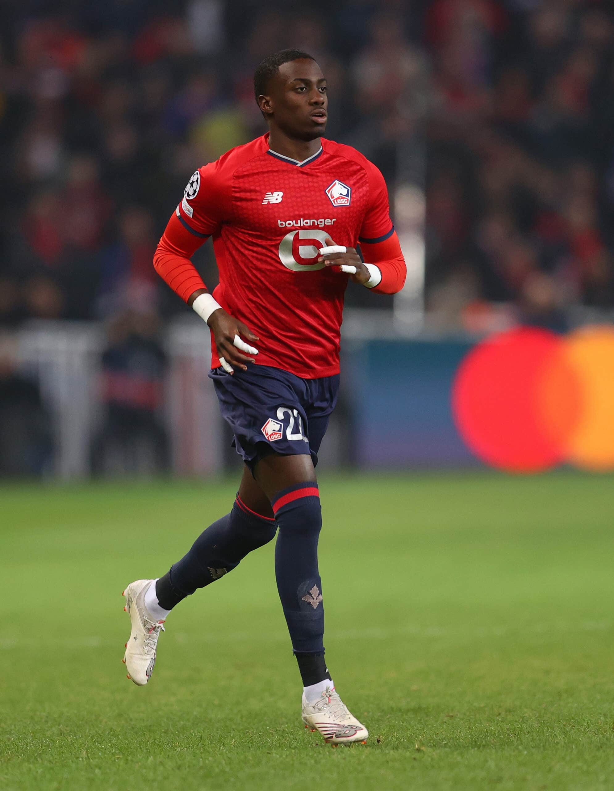 LILLE, FRANCE - MARCH 16: Timothy Weah of Lille OSC during the UEFA Champions League Round Of Sixteen Leg Two match between Lille OSC and Chelsea FC at Stade Pierre-Mauroy on March 16, 2022 in Lille, France. (Photo by Catherine Ivill/Getty Images)
