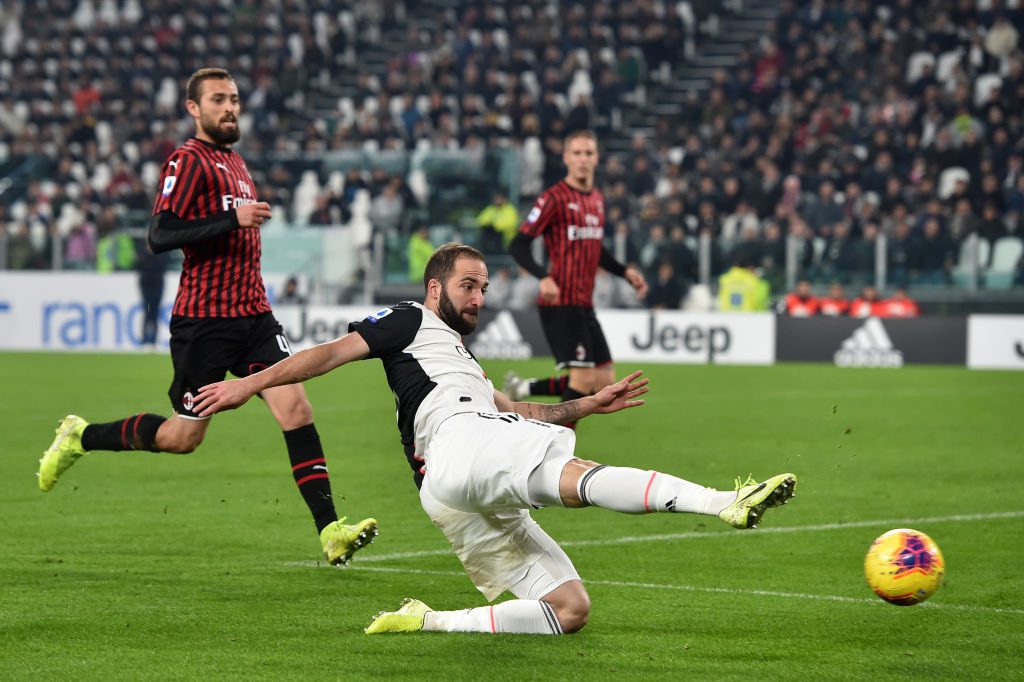 Gonzalo Higuain a sfidare due avversari, sotto lo sguardo vigile di Sami Khedira. É un istante di Milan-Juventus del 2017-18, dominato totalmente dal Pipita con una rete per tempo. Due capolavori che si traducono in conclusioni potenti sulle quali Donnarumma non può farci assolutamente nulla. A ispirarle Dybala, con un assist e un velo prezioso su invito di Asamoah.