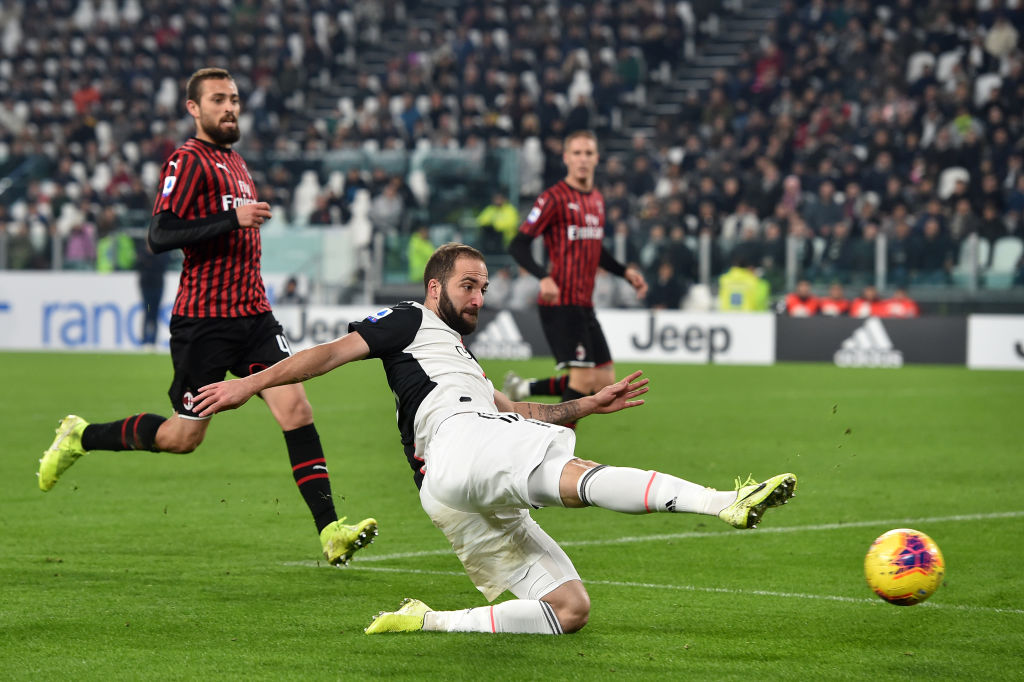 TURIN, ITALY - NOVEMBER 10: Gonzalo Higuain of Juventus in action during the Serie A match between Juventus and AC Milan at Allianz Stadium on November 10, 2019 in Turin, Italy. (Photo by Tullio M. Puglia/Getty Images)