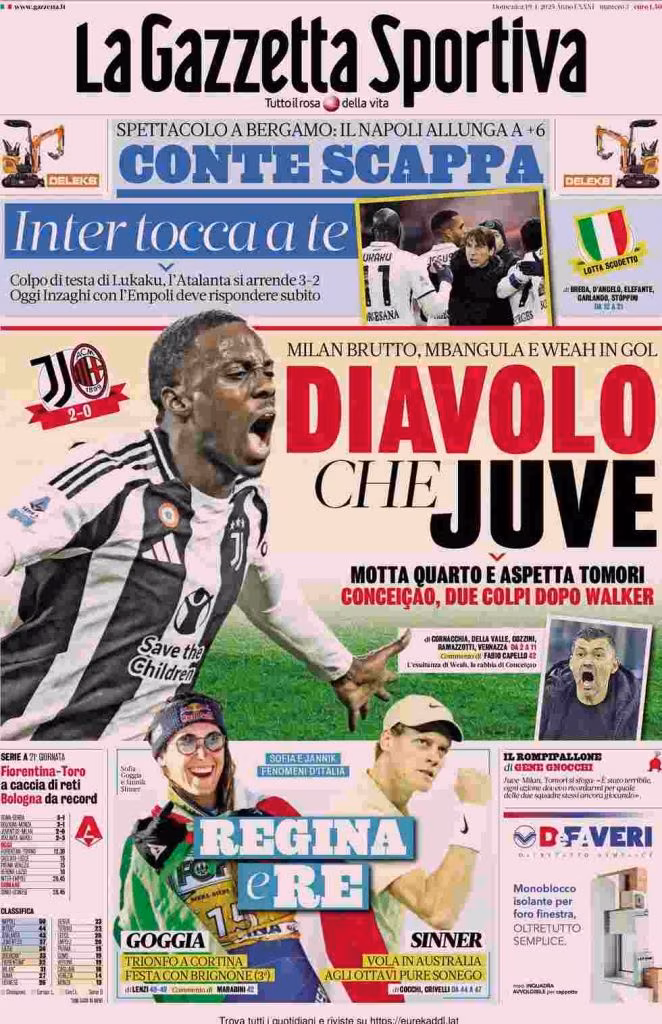 Rassegna stampa – La Juve supera il Milan: 2-0 con Mbangula e Weah
