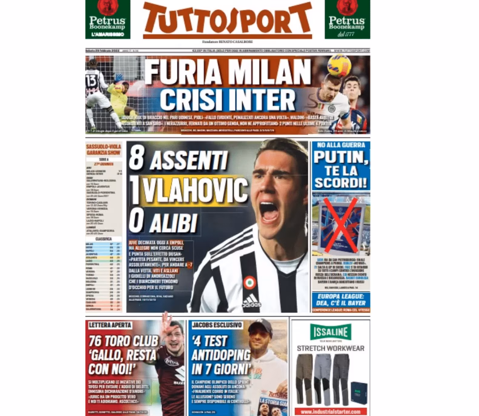 Massimiliano Allegri arriva alla partita in piena emergenza e dopo il pareggio in Champions League contro il Villareal per 1-1, e cercherà di vincere la partita per accorciare il distacco dalle prime della classe.