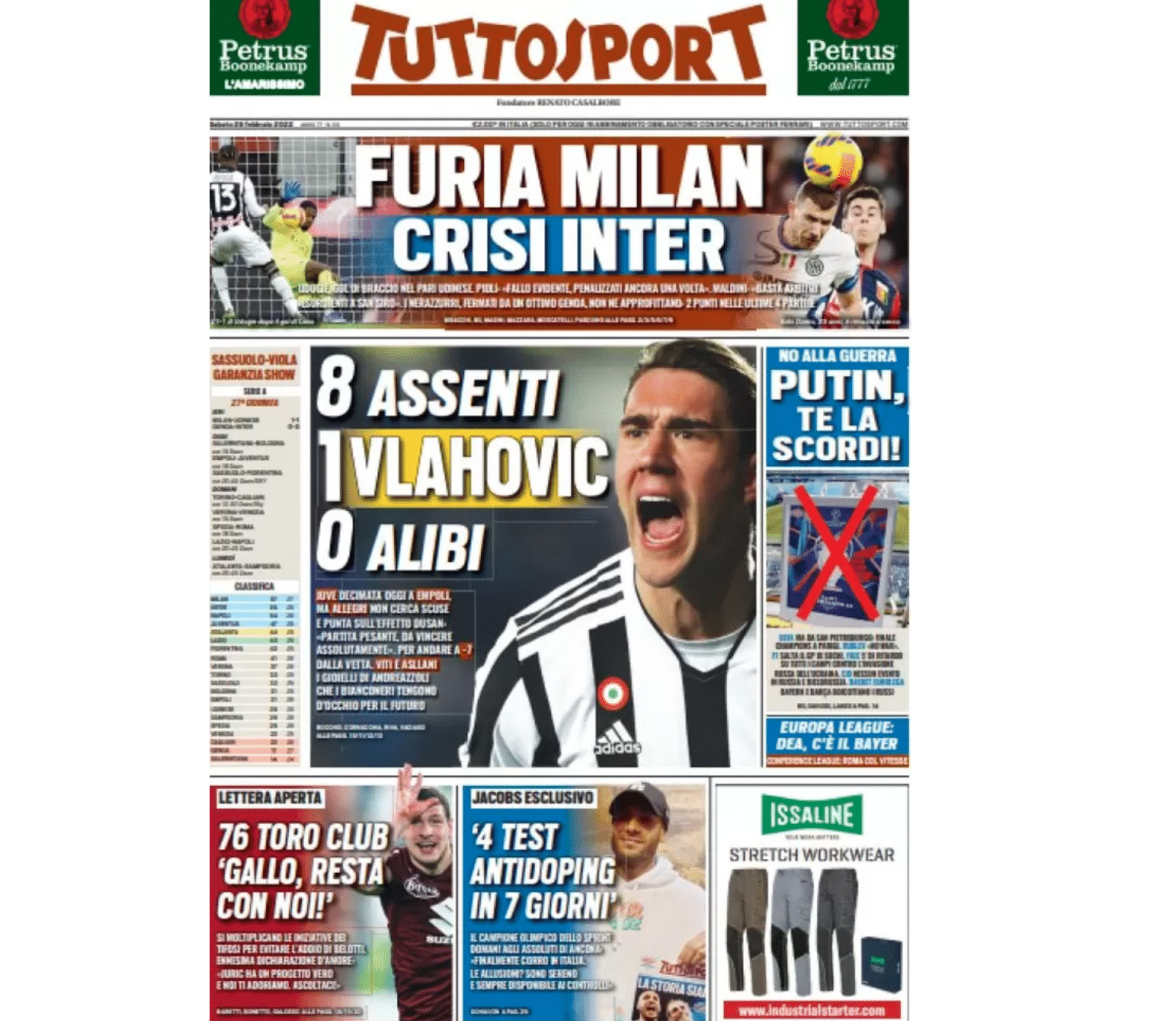 La prima pagina di Tuttosport.