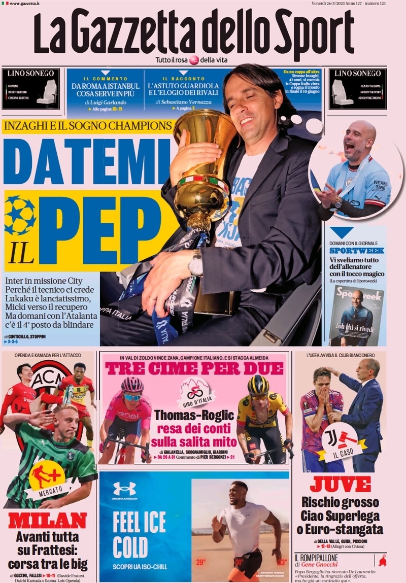 Negli altri lidi continua la sbornia per la vittoria della Coppa Italia dell’Inter. I nerazzurri hanno già portato a casa due trofei e sognano il triplete con la Champions League. Mister Simone Inzaghi è ora considerato il re delle coppe, passando dal rischio esonero alla permanenza certa.