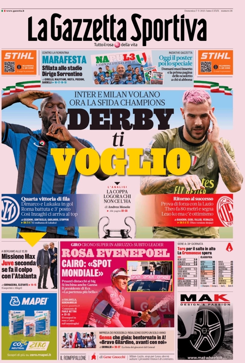 La squadra di Massimiliano Allegri è al momento a quota 63 punti e battendo i nerazzurri salirebbe al secondo posto scavalcando così la Lazio e allo stesso tempo tenendo a distanza la squadra di Gasperini.