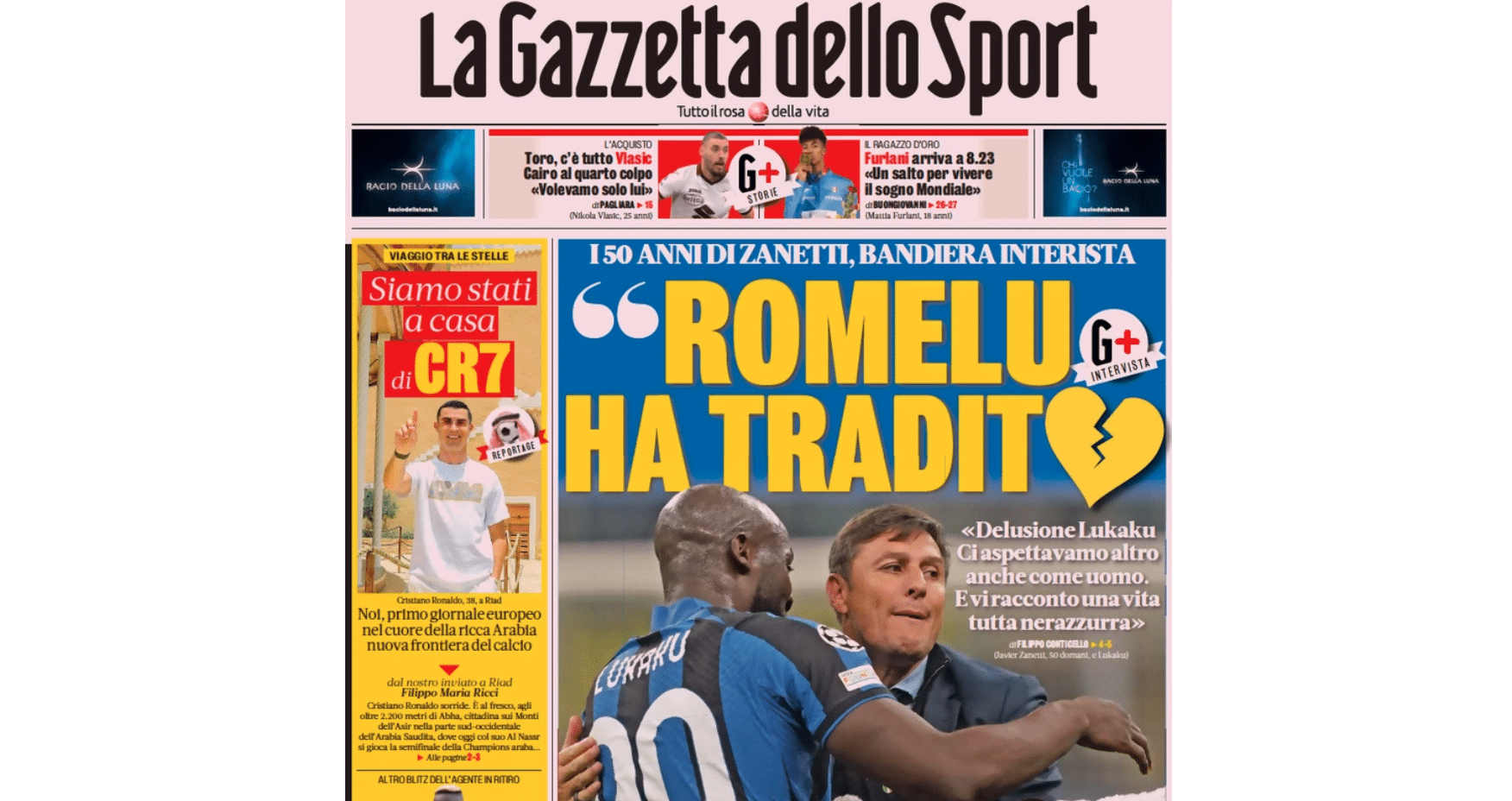 Questo il titolo che campeggia sulla prima pagina de La Gazzetta dello Sport, estratto da un’intervista rilasciata alla rosea da Javier Zanetti, ex capitano e dirigente dell’Inter. “Ci aspettavamo altro anche come uomo”, continua il virgolettato, a sottolineare la posizione dei nerazzurri sulla faccenda riguardante il comportamento dell’attaccante belga.