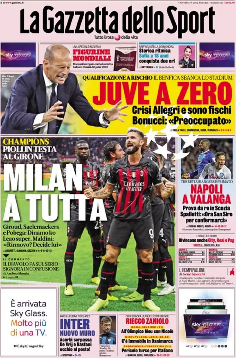 Zero punti. Dopo due giornate di Champions League la Juve è ancora ferma a zero punti, gli stessi del Maccabi Haifa per intenderci. Un risultato negativo che sottolinea il momento di crisi della squadra di Allegri.