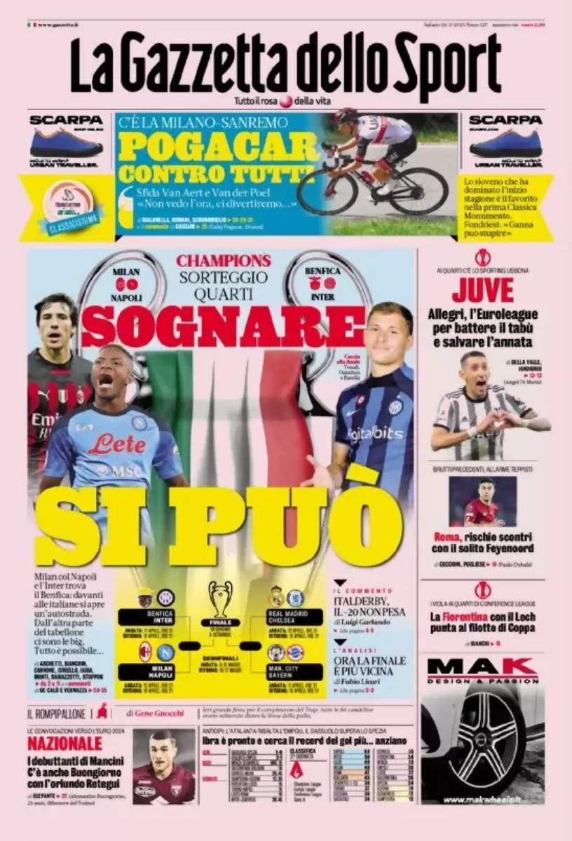 Il match avrà inizio domani, domenica 19 marzo, alle 20:45 allo stadio San Siro di Milano. Che vinca il migliore.