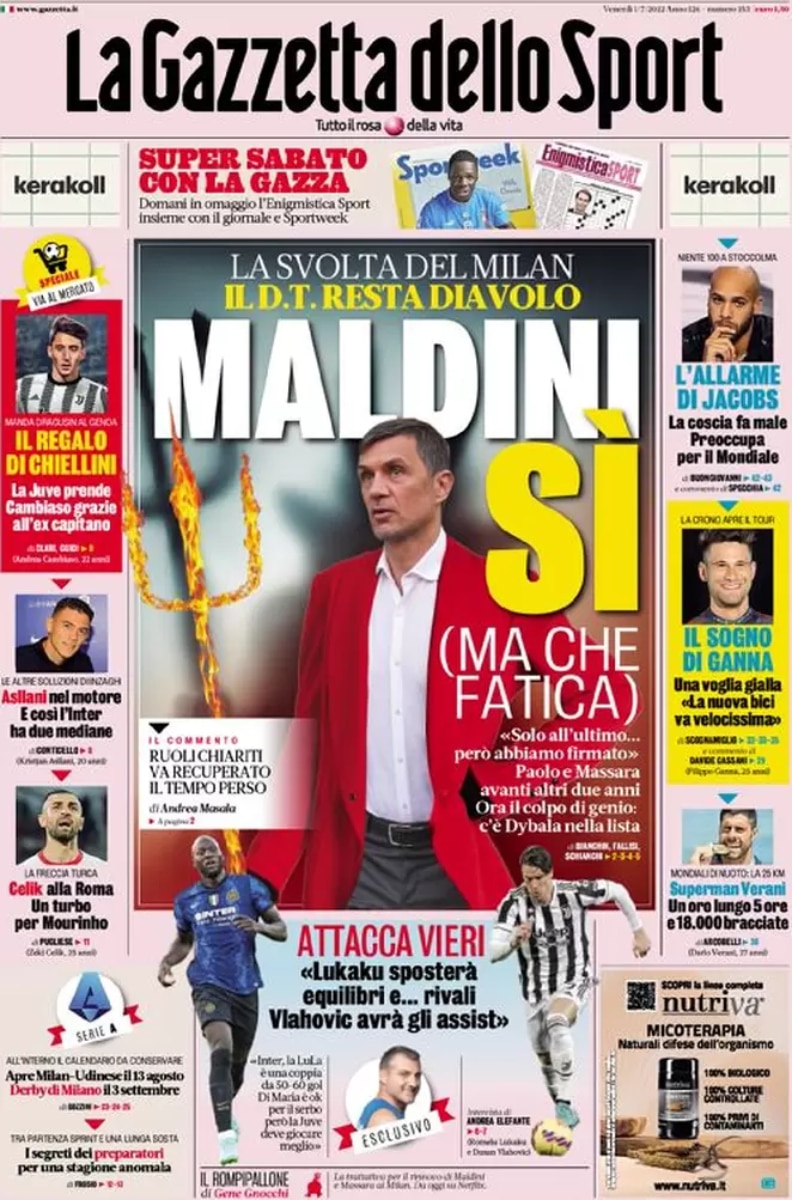 Più complessa la situazione di Paulo Dybala, cercato a lungo dall’Inter ma ancora senza un contratto ufficiale. I nerazzurri hanno deciso di puntare su Lukaku rallentando i rapporti con l’argentino. Ora nella trattativa potrebbe inserirsi il Milan.