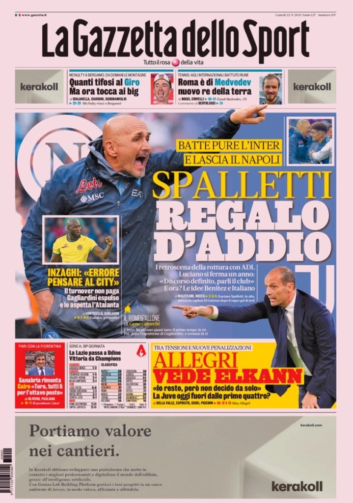 Come riportato da Sky Sport, infatti, Allegri non è in dubbio. L’allenatore bianconero resterà, mentre a cambiare sarà il direttore sportivo. Giuntoli è il preferito, ma molto dipenderà dal Napoli di De Laurentiis. Per questo la Juve pensa alla promozione interna di Manna, già responsabile di un progetto vincente come la Next Gen.