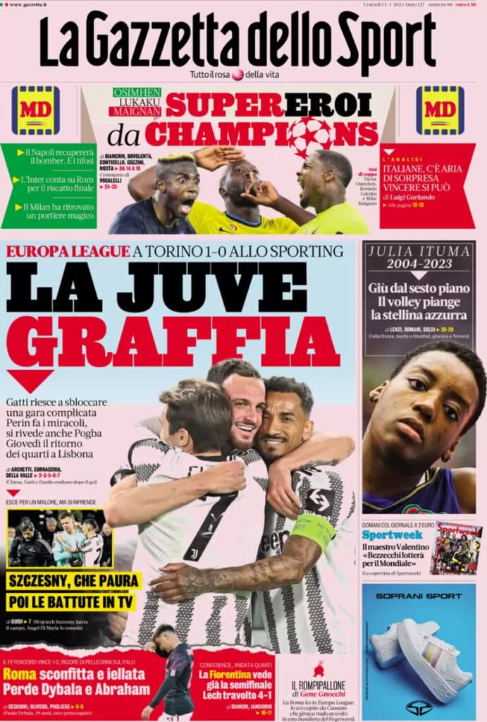 La redazione di Juvenews.eu vi augura il buongiorno in questo venerdì 14 aprile e vi dà il benvenuto nella consueta rassegna stampa mattutina.